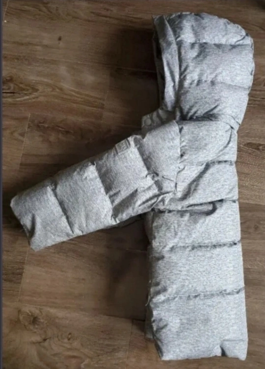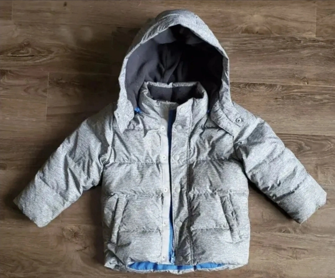 It has a zipper and buttons at front. Warm, perfect for snow season. Lateral pockets. The hood is attached to the jacket by a zipper.