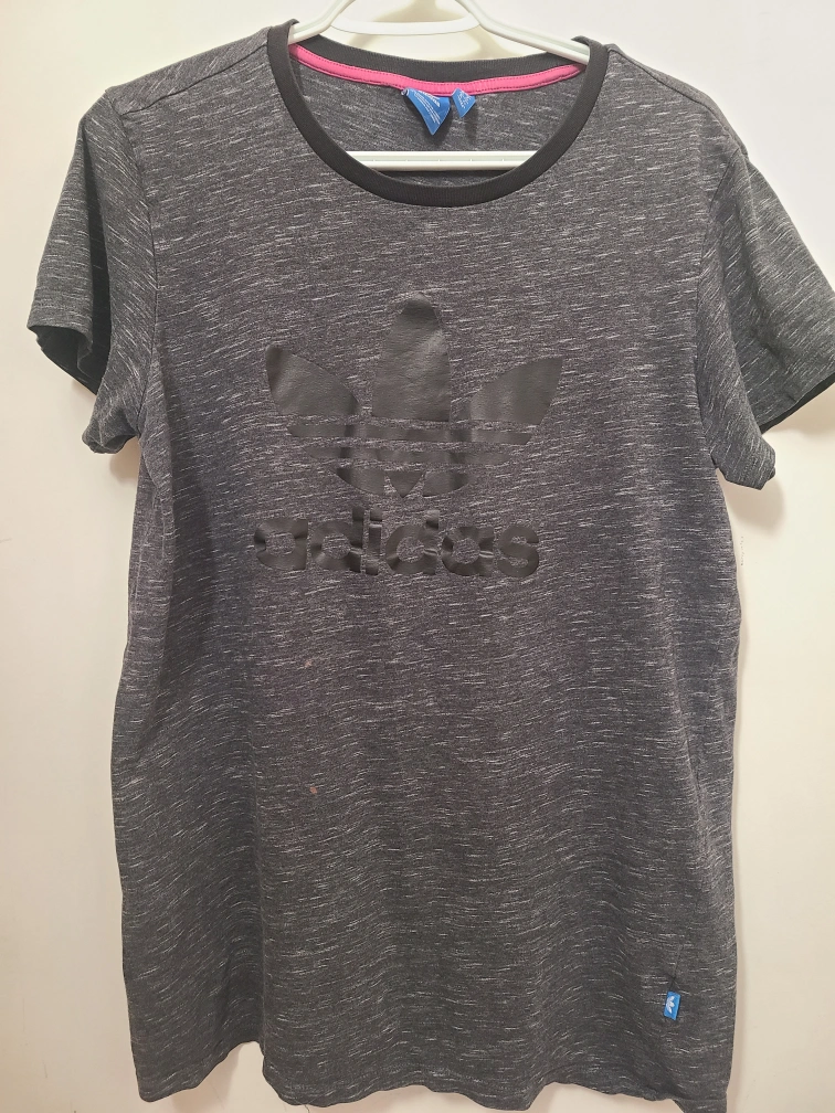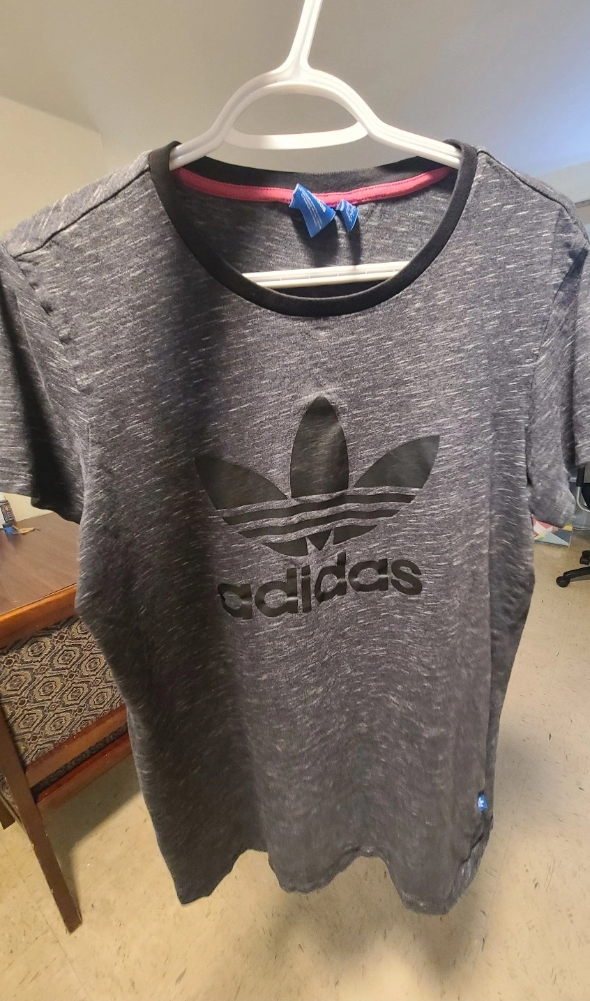 Cool, trendy ladies Adidas t-shirt size small-medium. Grey and black style. Located Downtown( Sherbourne St and Gerrald St East) PICK UP ONLY* CASH ONLY* NO RETURNS OR EXCHANGES THANK YOU