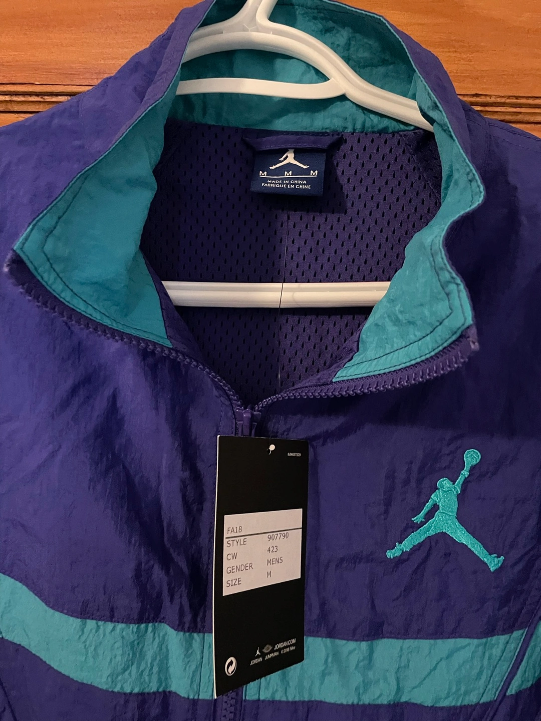 The track suit top and bottom are size Medium, and the shoes are size 10.5.