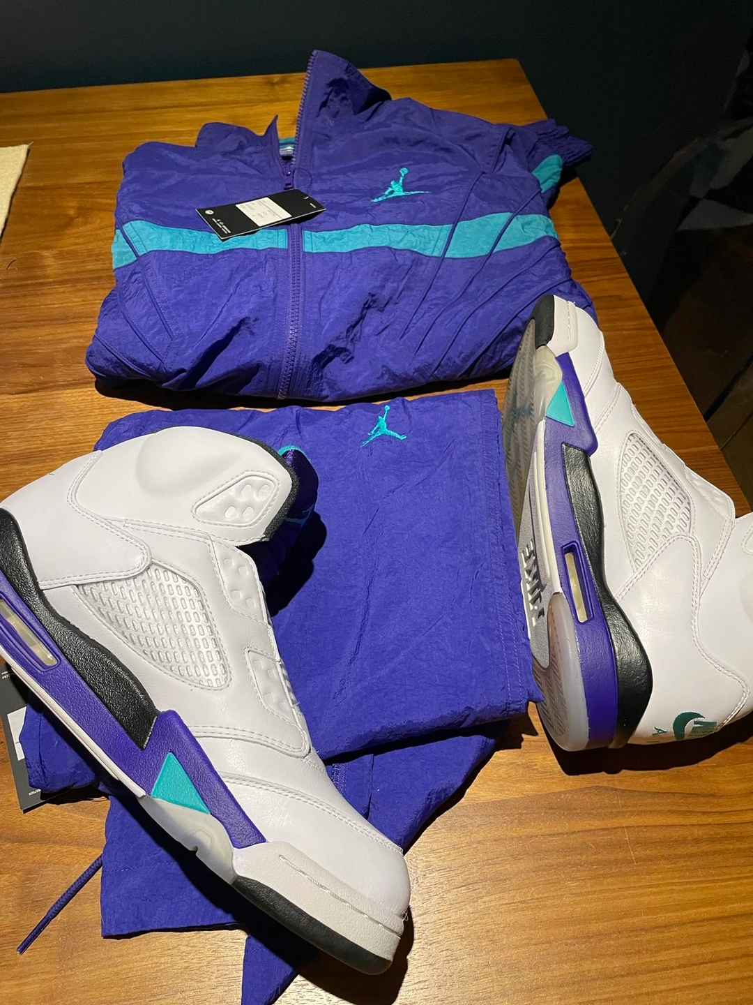 I’m selling my Air Jordan 5 Retro NRG (10.5 dead stock) paired with the matching nylon matching track suit.