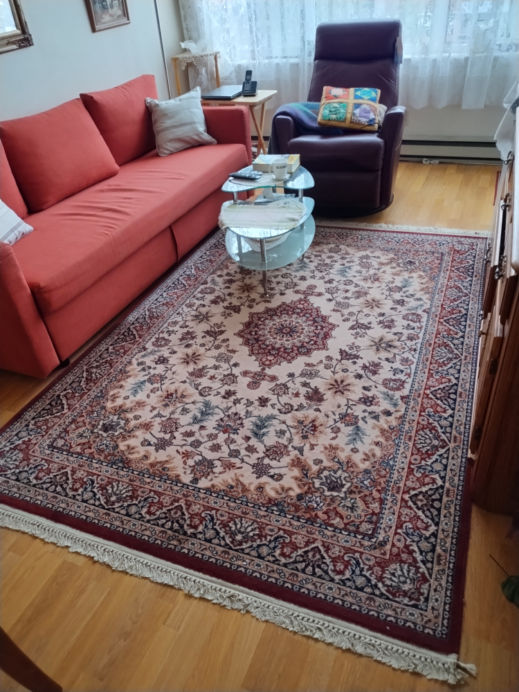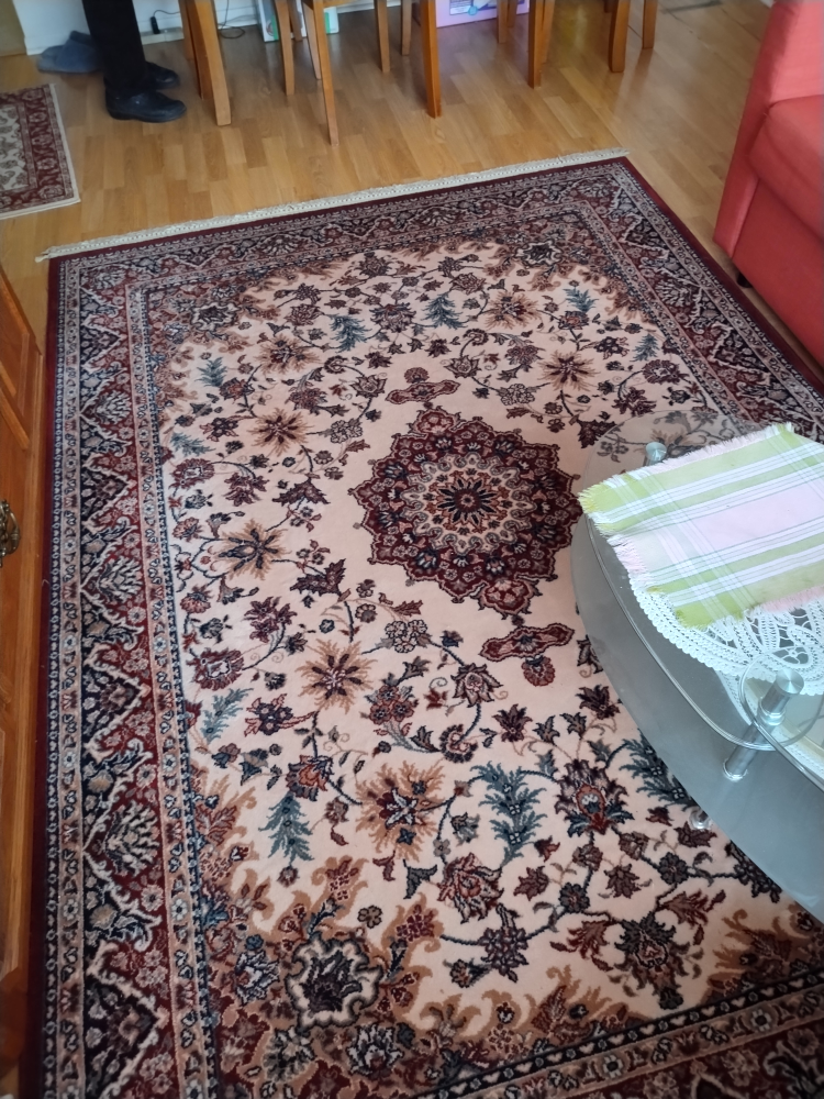 Dimensions: 2'40 by 1,70 cm made of wool in Belgium Ideal for living room, dining room or bedroom perfect condition π original price was $485