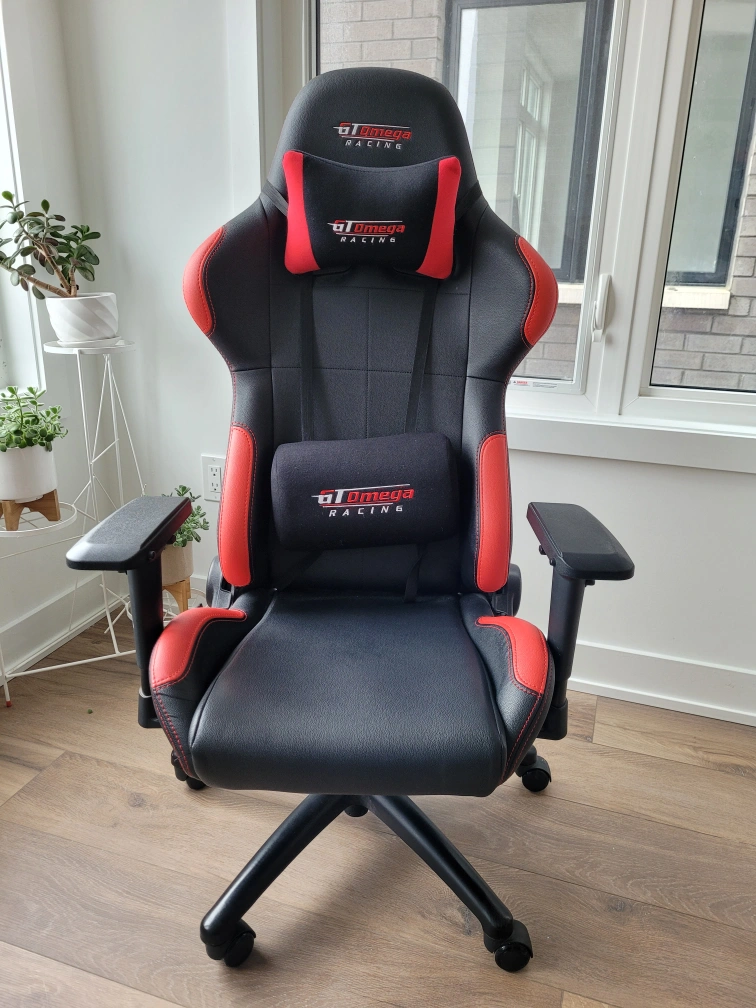 Racing style gaming chair in excellent condition, with headrest and lumbar cushions (retails $250-300+ new for similar)
