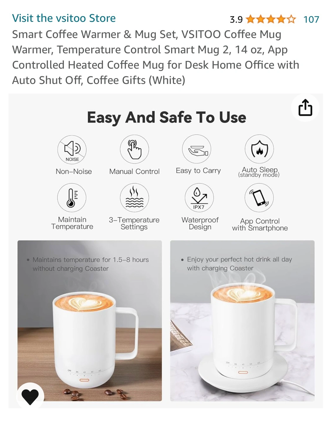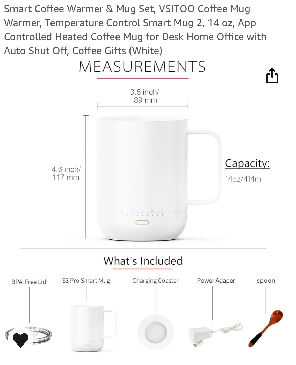 Smart Coffee Warmer & Mug Set, VSITOO Coffee Mug Warmer, Temperature Control Smart Mug 2, 14 oz, App Controlled Heated Coffee Mug for Desk Home Office with Auto Shut Off, Coffee Gifts (White)
