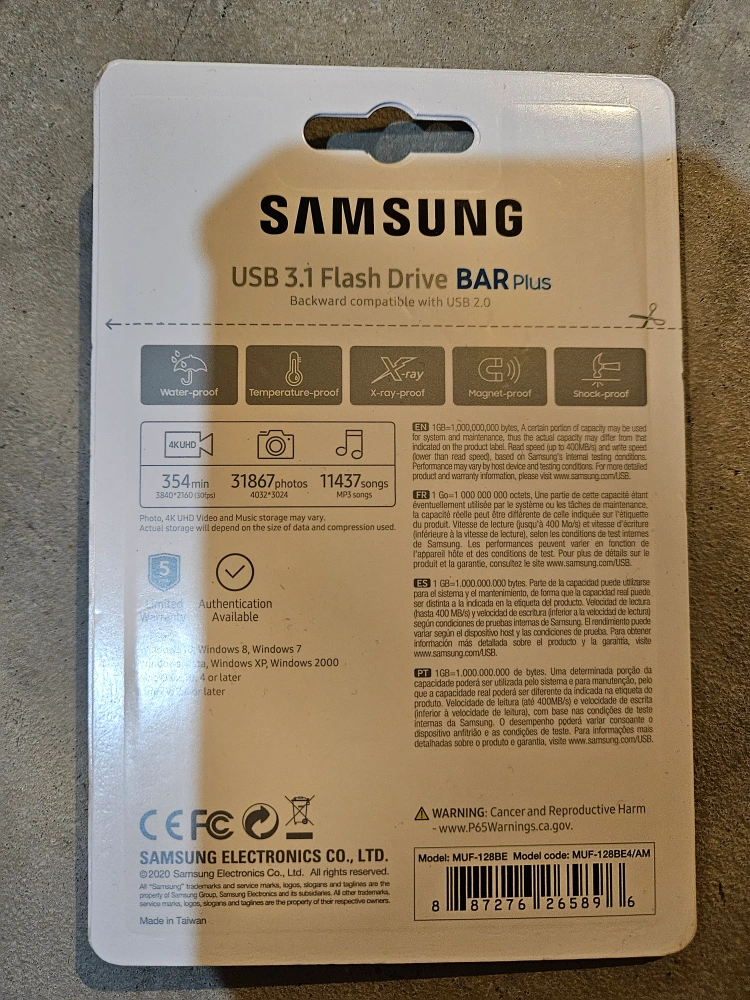 Selling a brand new never used Samsung 128GB USB stick.
