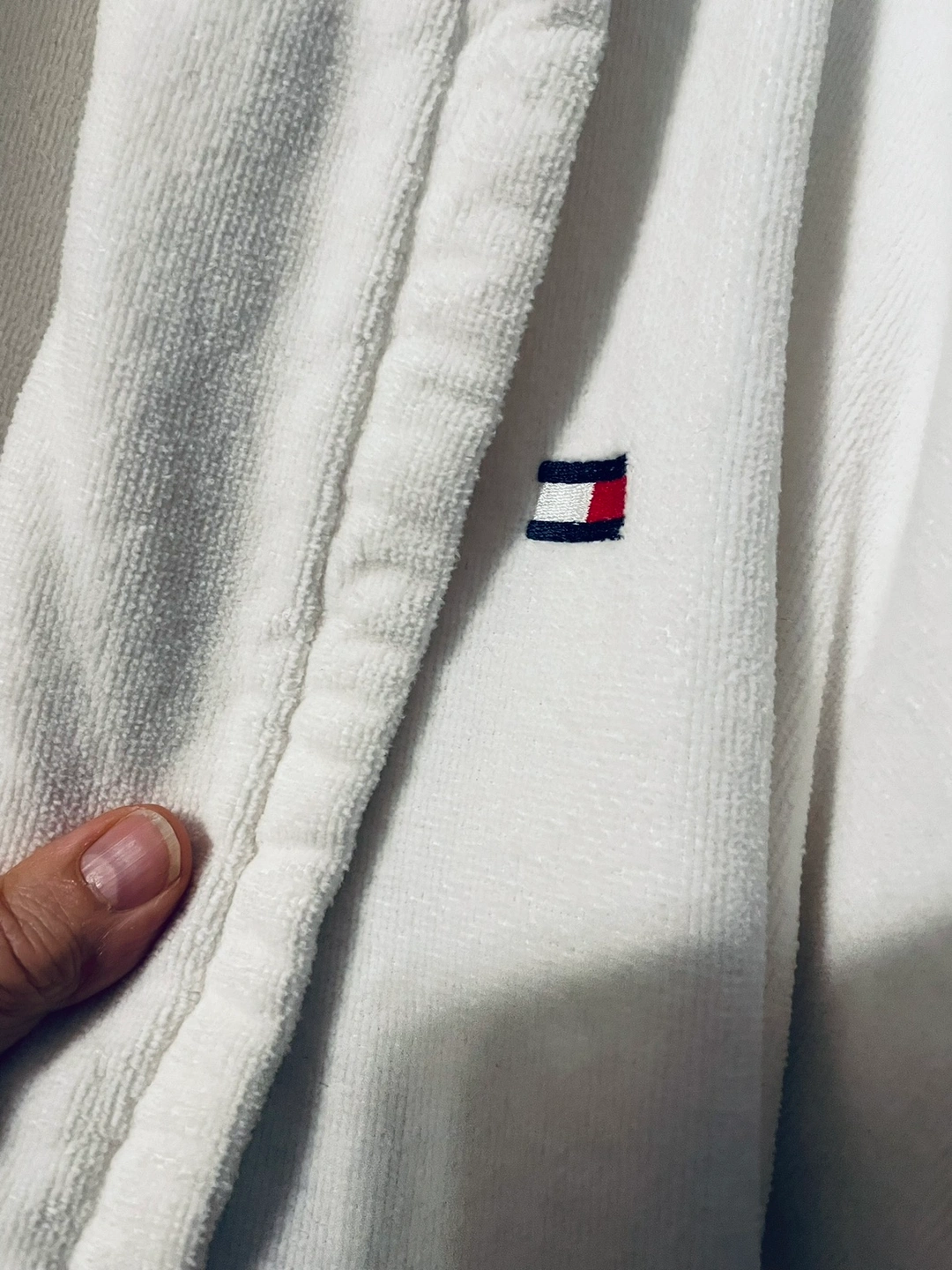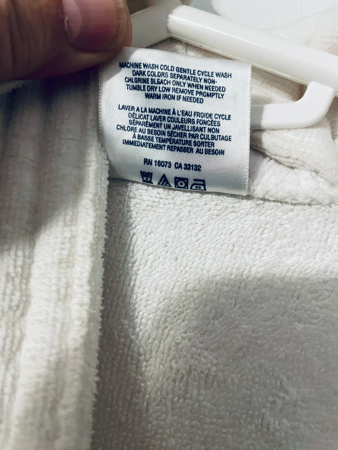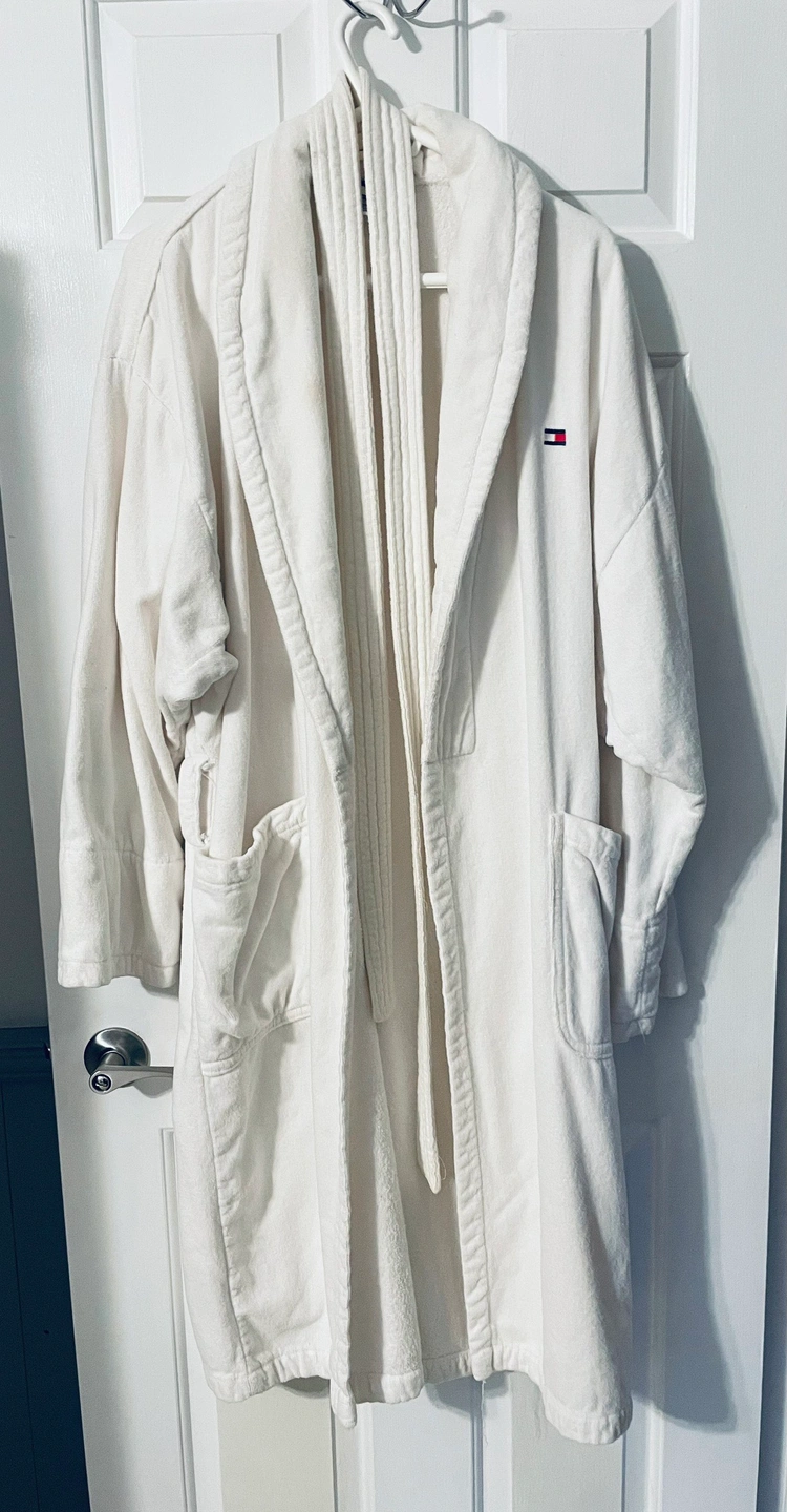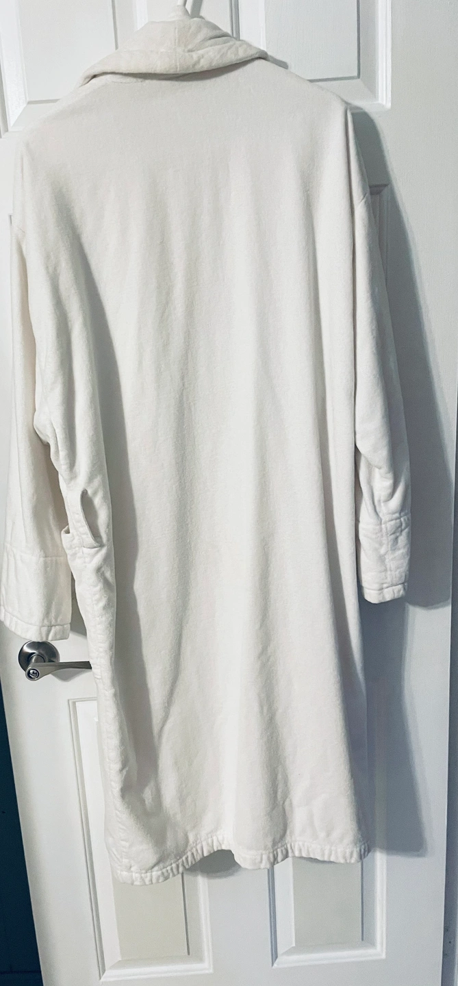 Excellent condition like new. Nice thick towel type cozy robe. Had it extra for guests, but never used other than washed once to be used. Tag says one size but would fit from L to a 2X women or XL to XXL men.