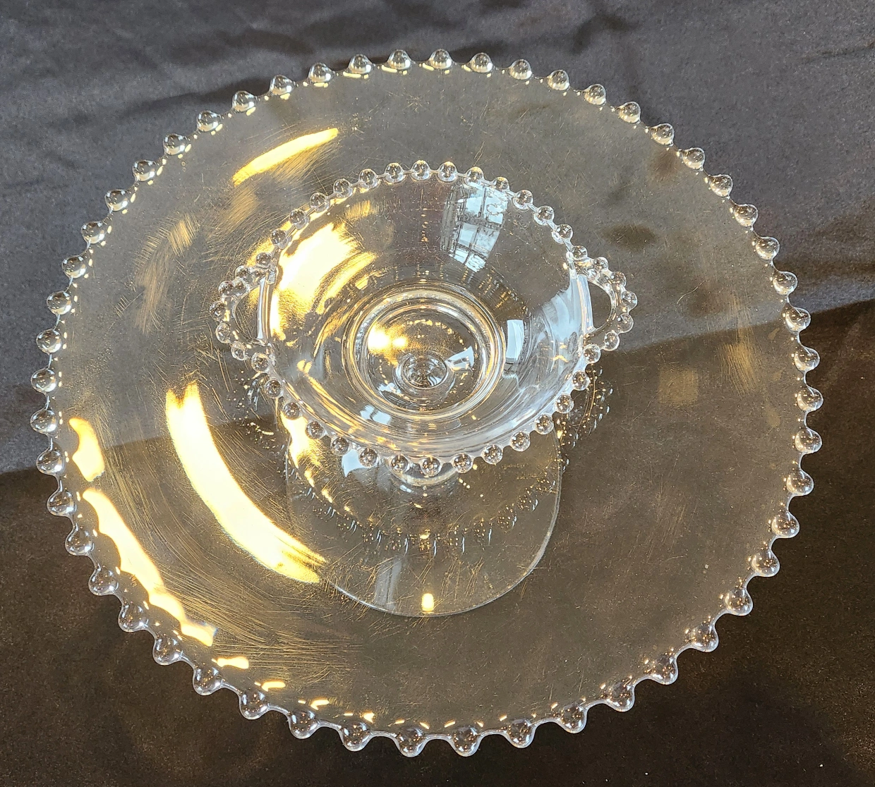 Vintage Candlewick 3Ball Stem Pedestal Cake or Pie Serving Plate.