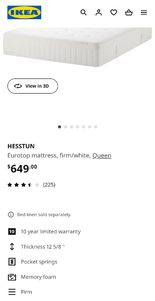 I have also a mattress matching with the frame Ikea Hesstun mattress super cozy and thick. (added pls see the last photos) mattress is $100