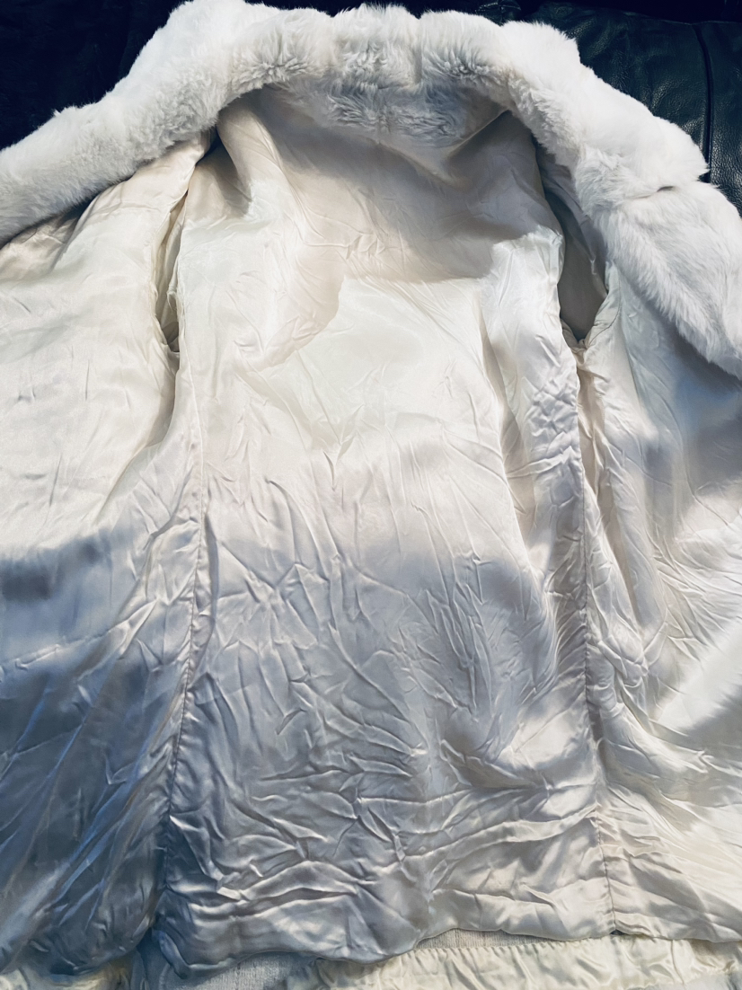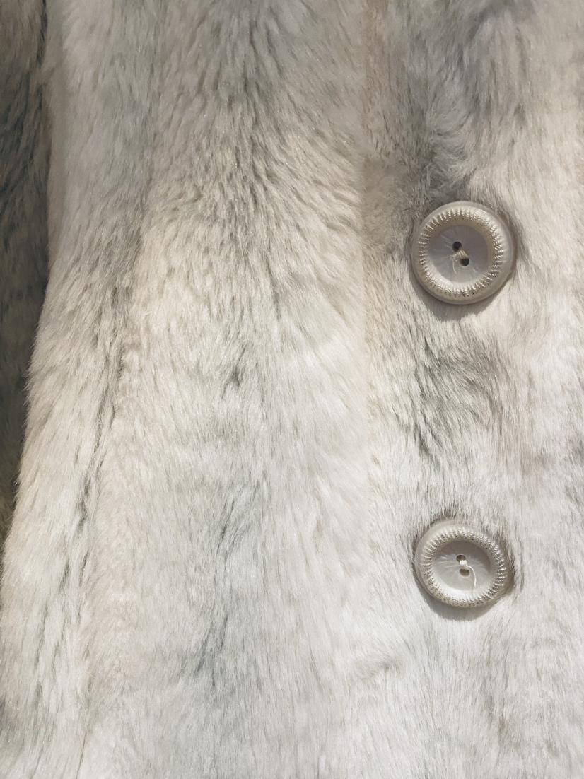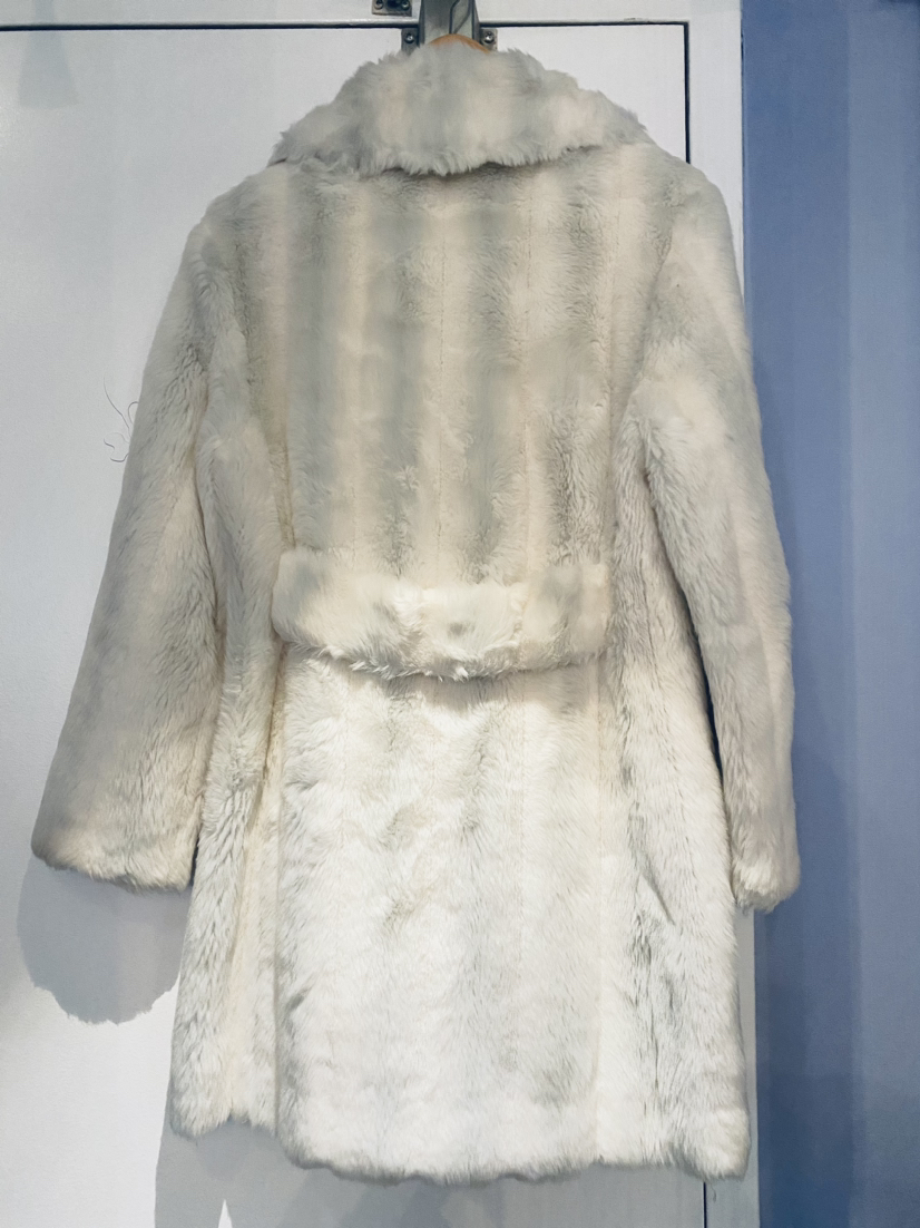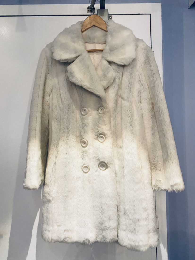 Gorgeous off-white faux fur coat. Have had this in the family for at least 25 years. Very well cared for and in excellent condition. Has oversized collar, 6 large buttons on front, decorative belt loop on back, and is fully lined. Lightweight, comfortable and warm, great for costumes or special occasions. #vintage #retro #seventies #glam