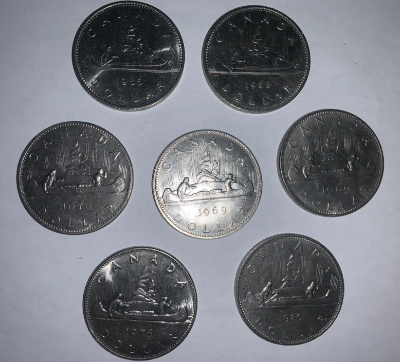 7 “The Voyageur” Commemorative Canadian Dollars in uncirculated mint condition.