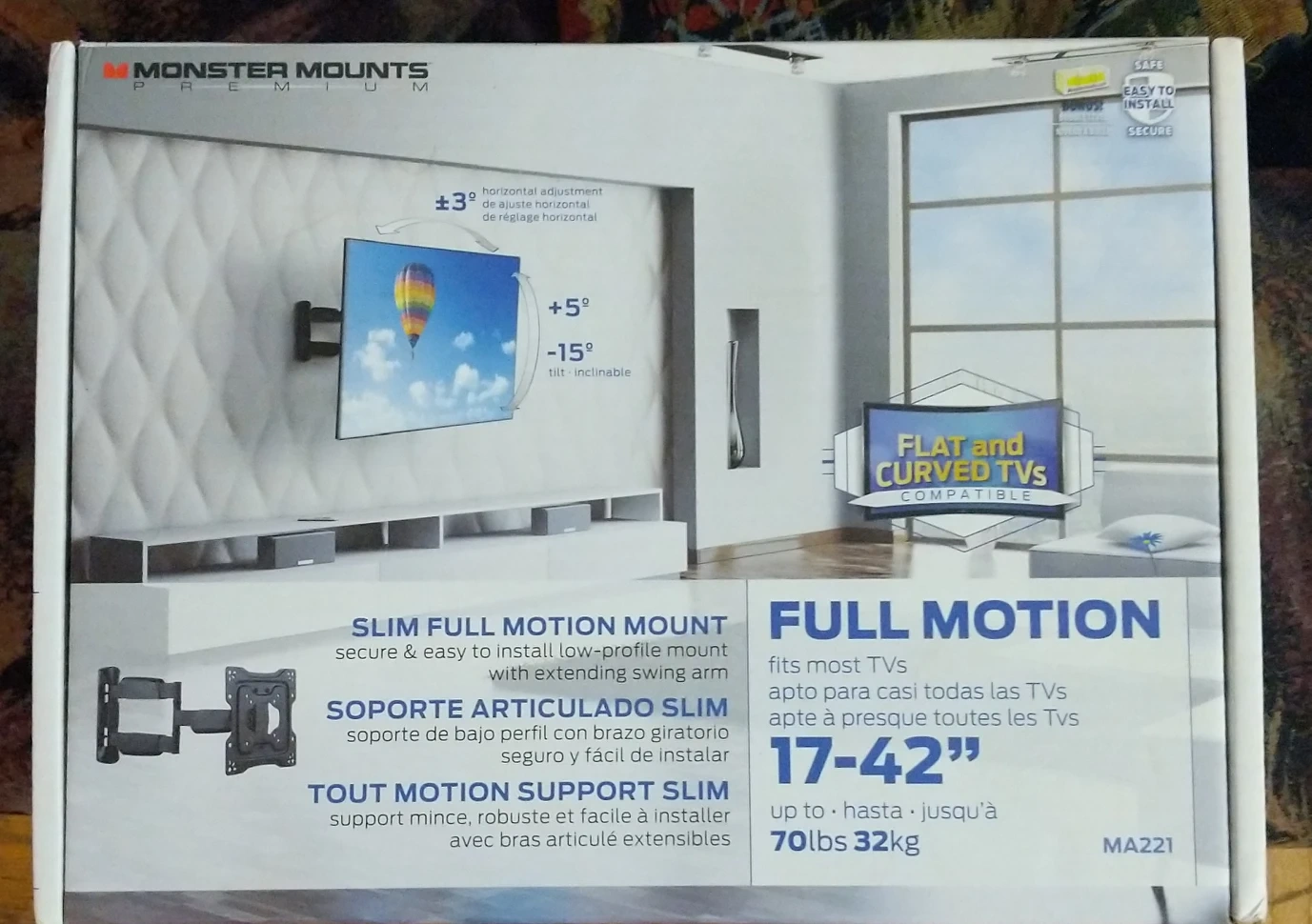 Full Motion. Fits Most TVs Size 17"-42" upto 70lbs ( 43KG ) Regular $99+taxes.