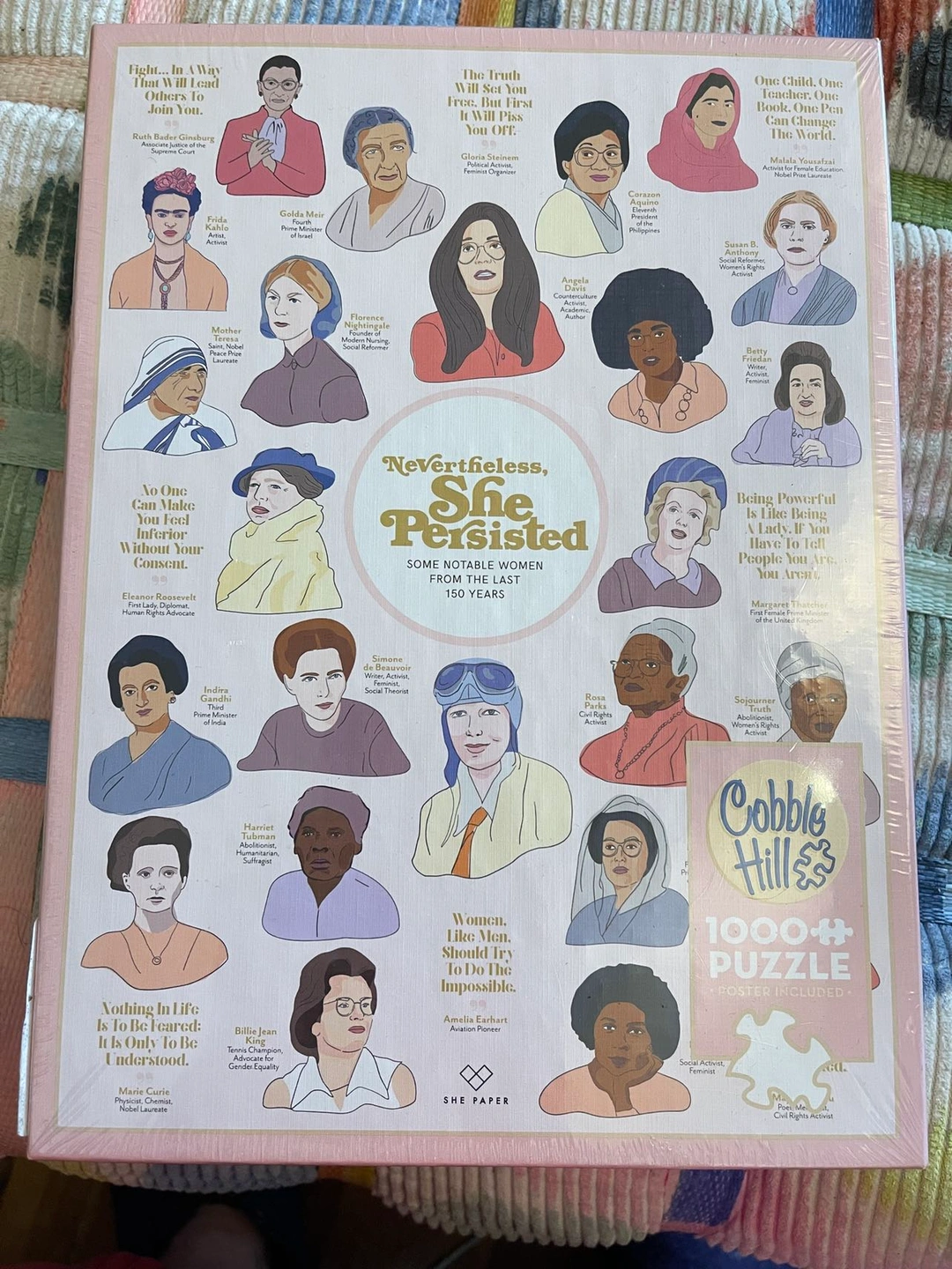 Brand new 1000 piece Cobble Hill jigsaw puzzle of notable women from the last 150 years. still wrapped in plastic. Comes with a poster of the puzzle image.