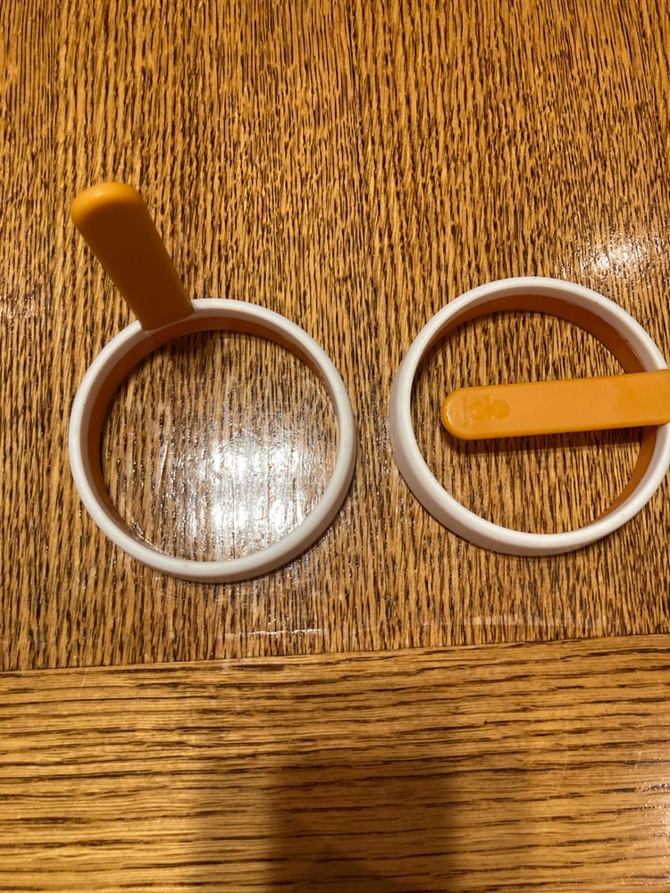 Round shaped eggs perfect for breakfast sandwiches.