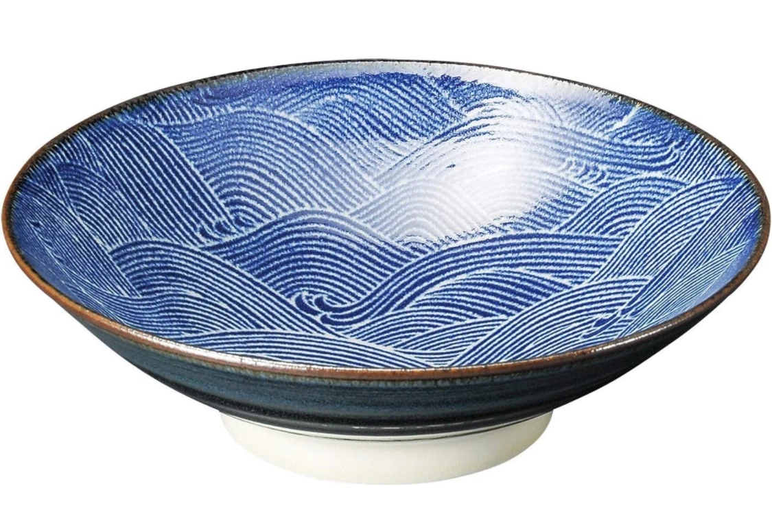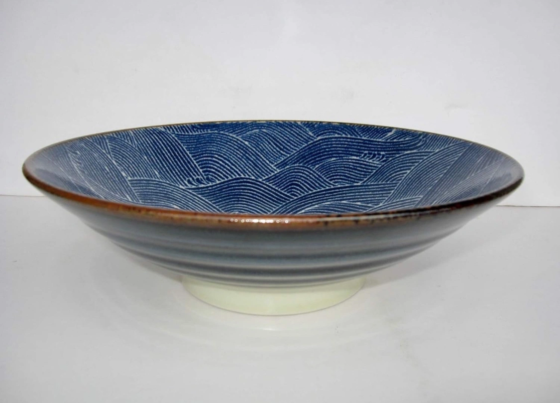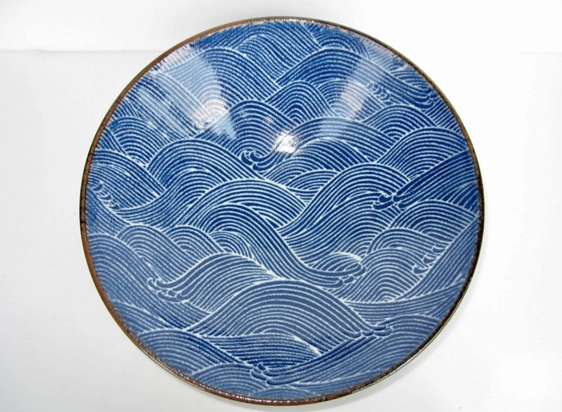 Diameter Blue Ocean Wave Seigaiha Ceramic Serving Bowl