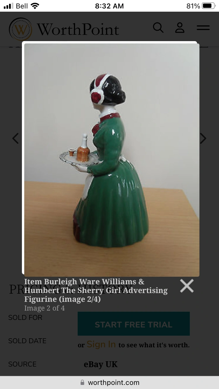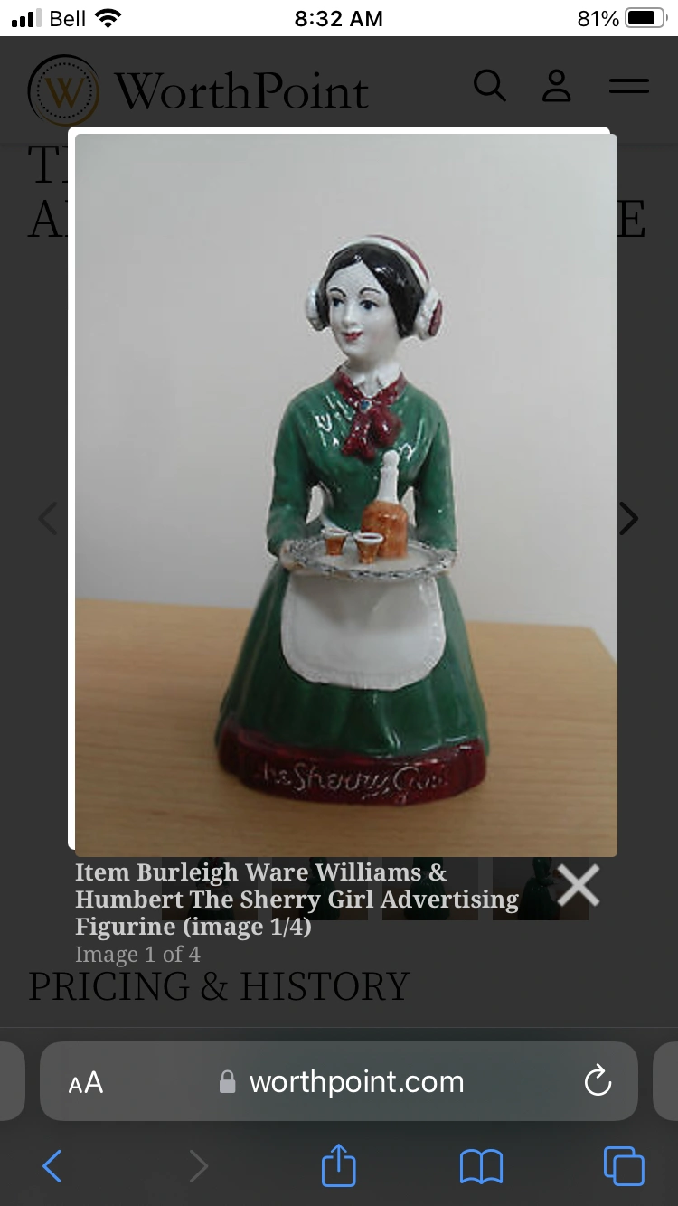 Vintage Collectible BURLEIGH WARE WILLIAMS & HUMBERT THE SHERRY GIRL ADVERTISING FIGURINE