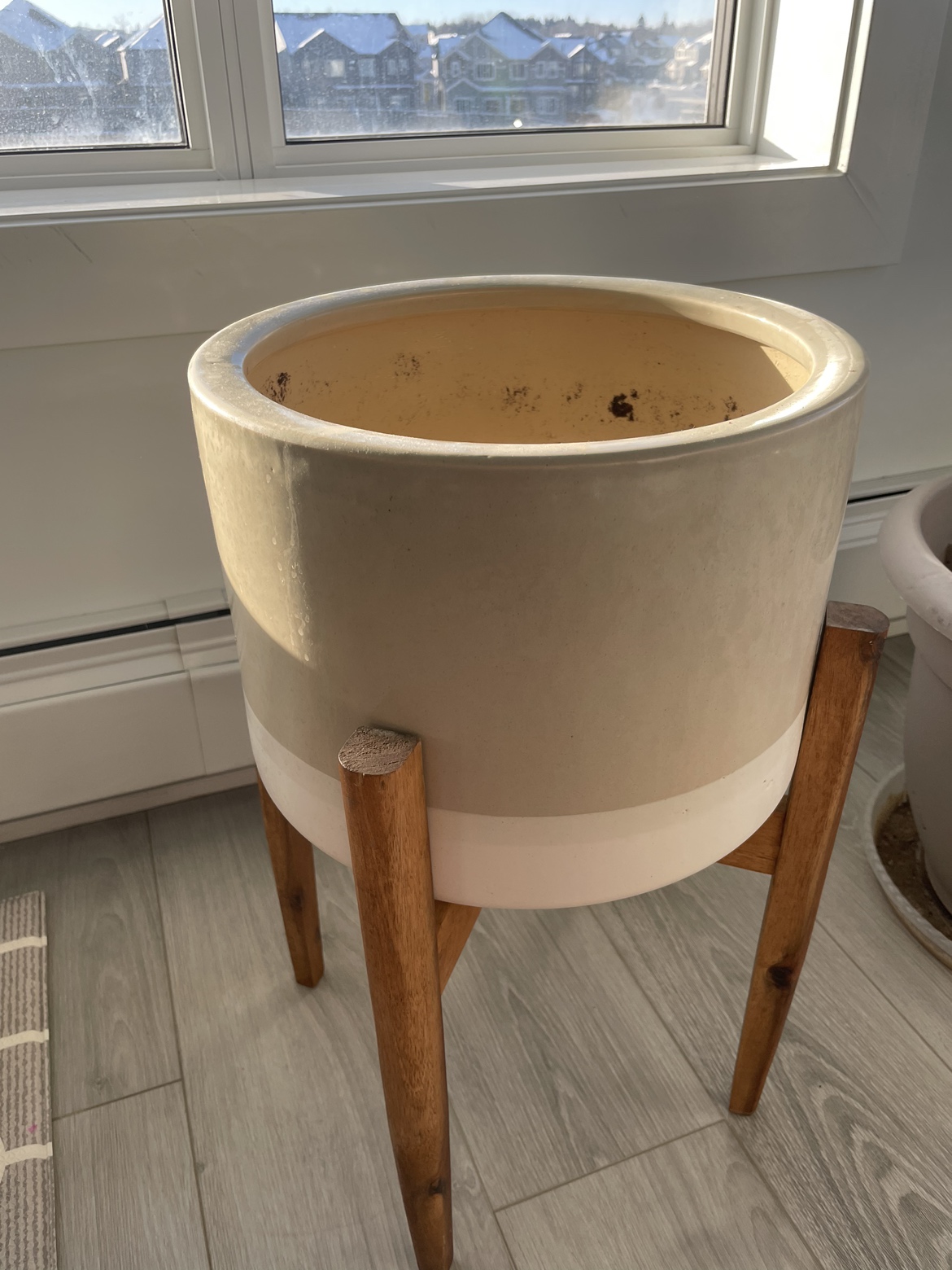 My plant outgrew the size of the pot. I paid $35 for the pot alone without the stand, but i will give it for $30 all together. It’s in great condition so take it or leave it. Just don’t waste my time!