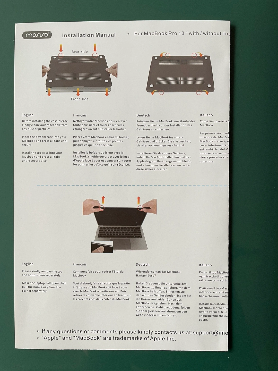 •Plastic hard shell cover for MacBook Pro 13