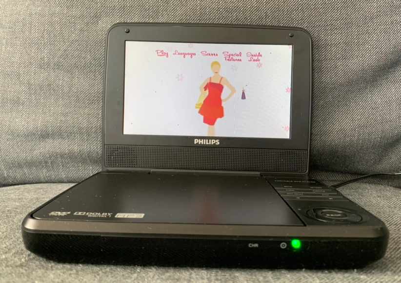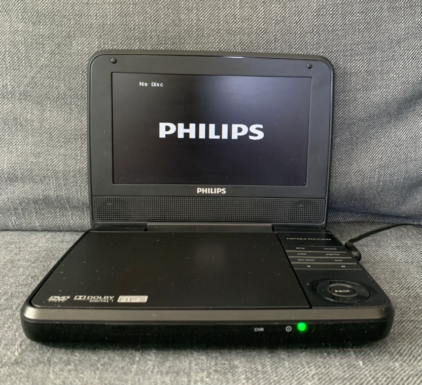 Portable DVD player in good condition, works well, used mostly for travel. There is a TSA sticker attached to the top, can be removed if needed. Comes with original charger and user manual, box not included. Please see pictures for dimensions. Asking price or best offer.