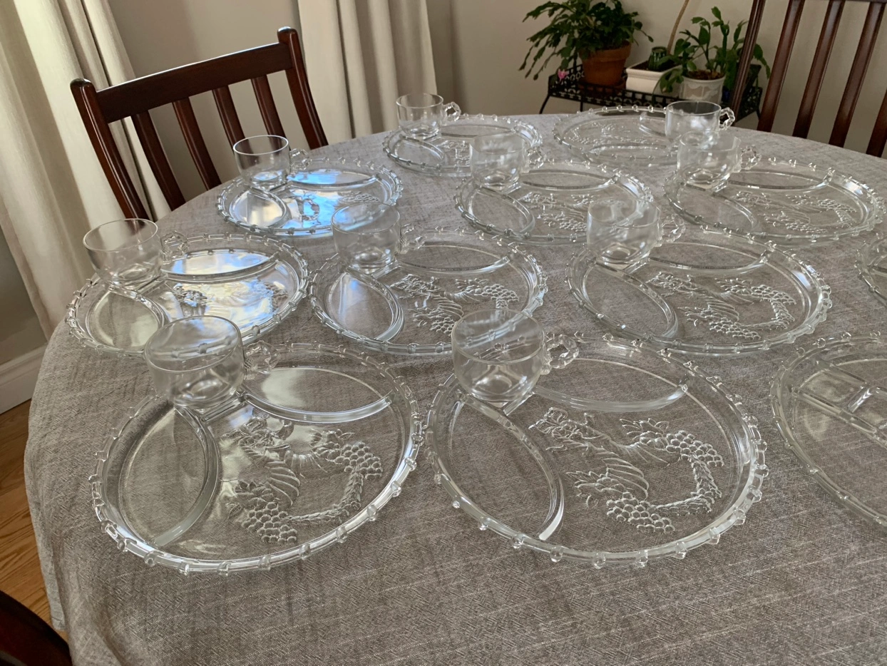 Vintage Federal Style Candlewick/Bead Edge Snack Plate Sets