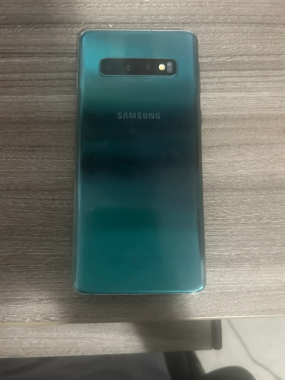 Samsung Galaxy S10 smartphone in a teal colour. It's a great phone with a clear display. Features a powerful camera system for stunning photos.
