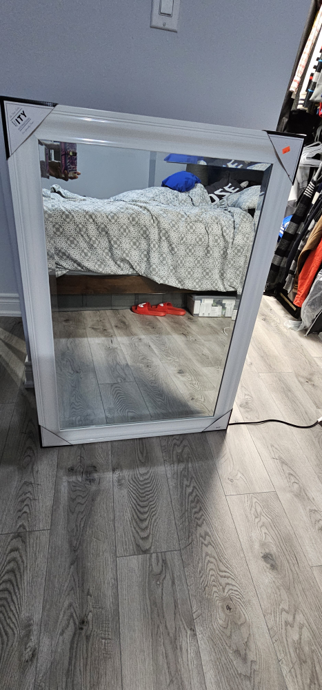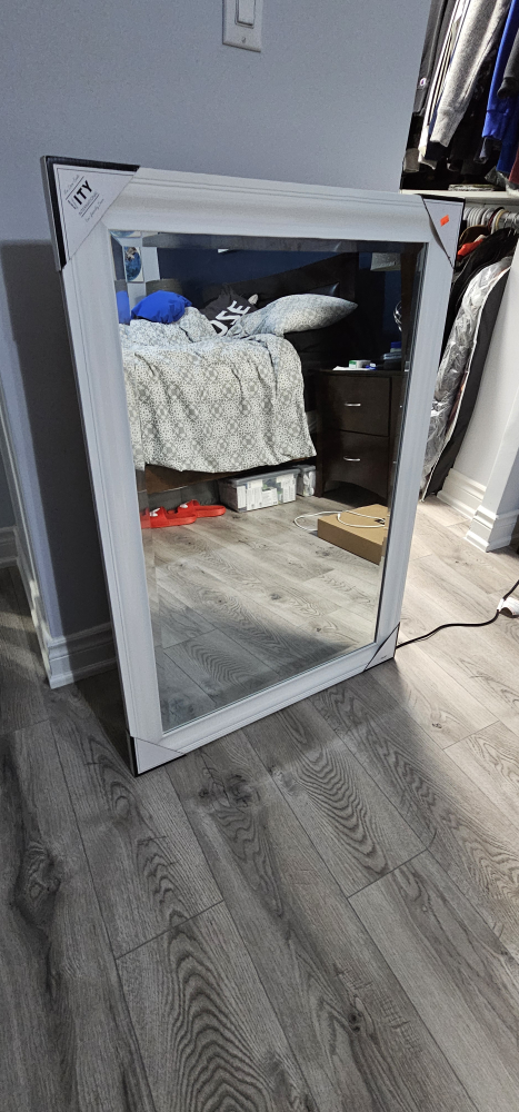 Mirror brand new, never used. also available in black frame matte. white frame is glossy.