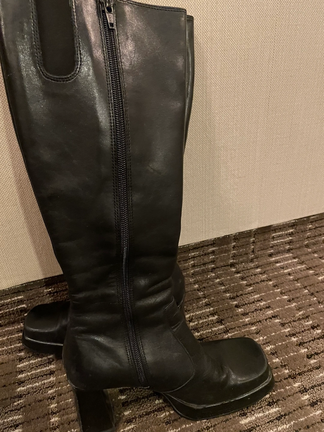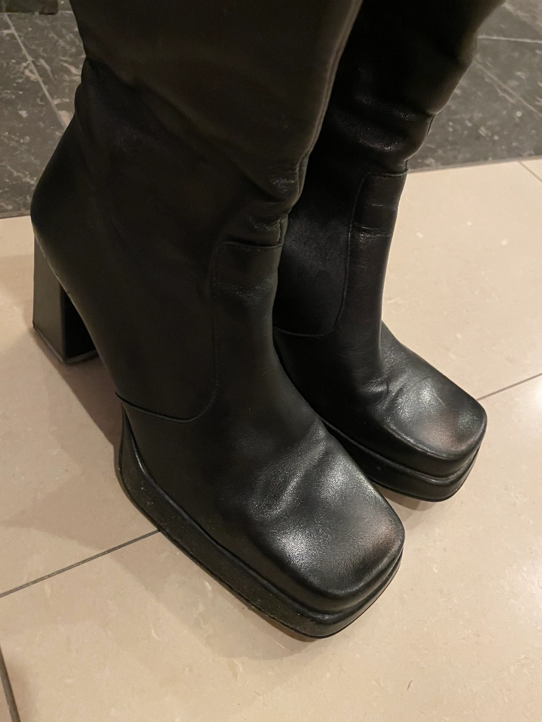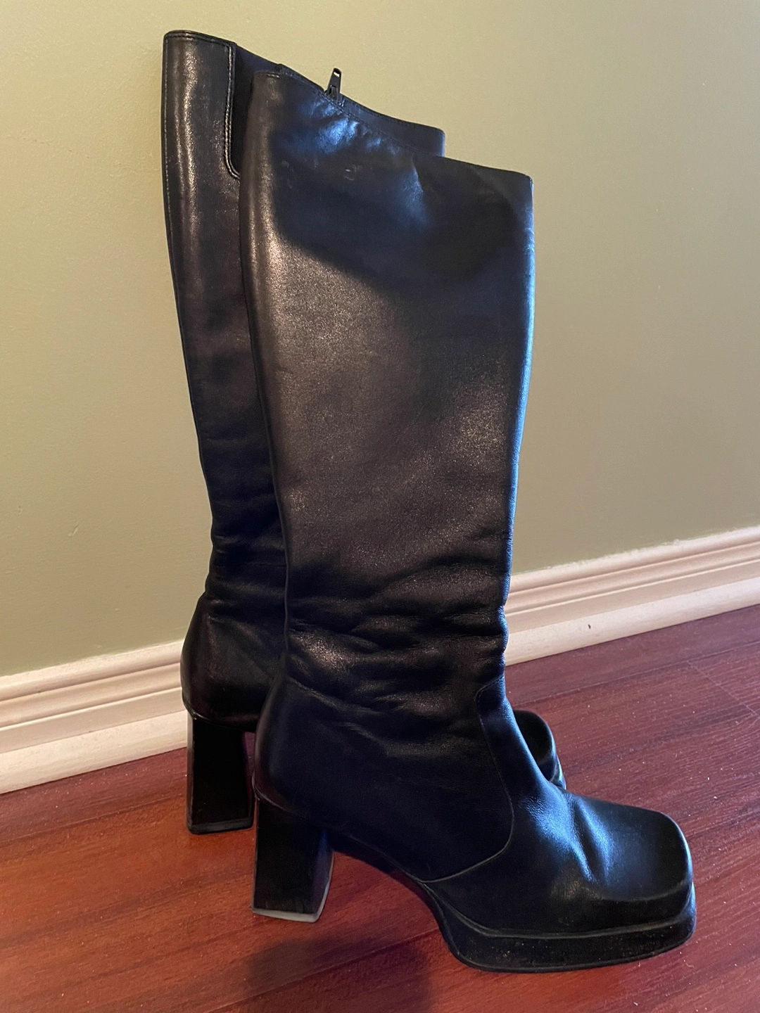 Tall leather black boots