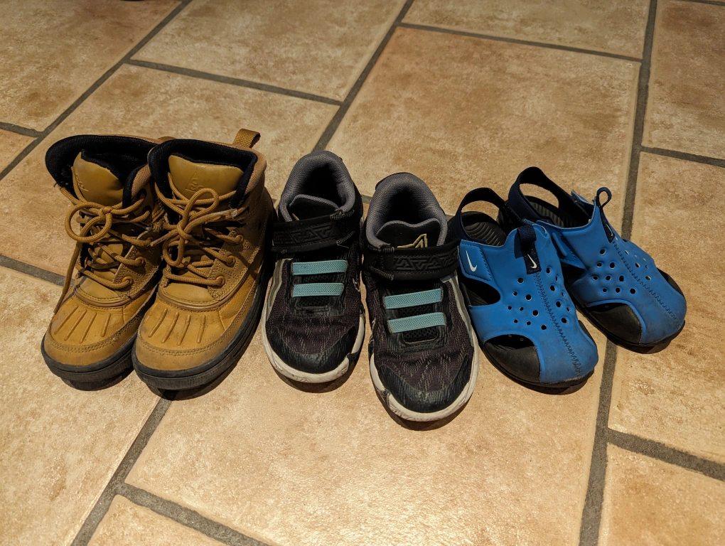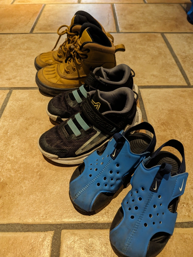 Good condition Boy Nike shoes. Nike running shoes (11C) Nike high top (11C) Nike sandals in blue (10C) Porch pickup in Markham west area - Bayview/John street