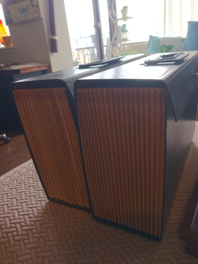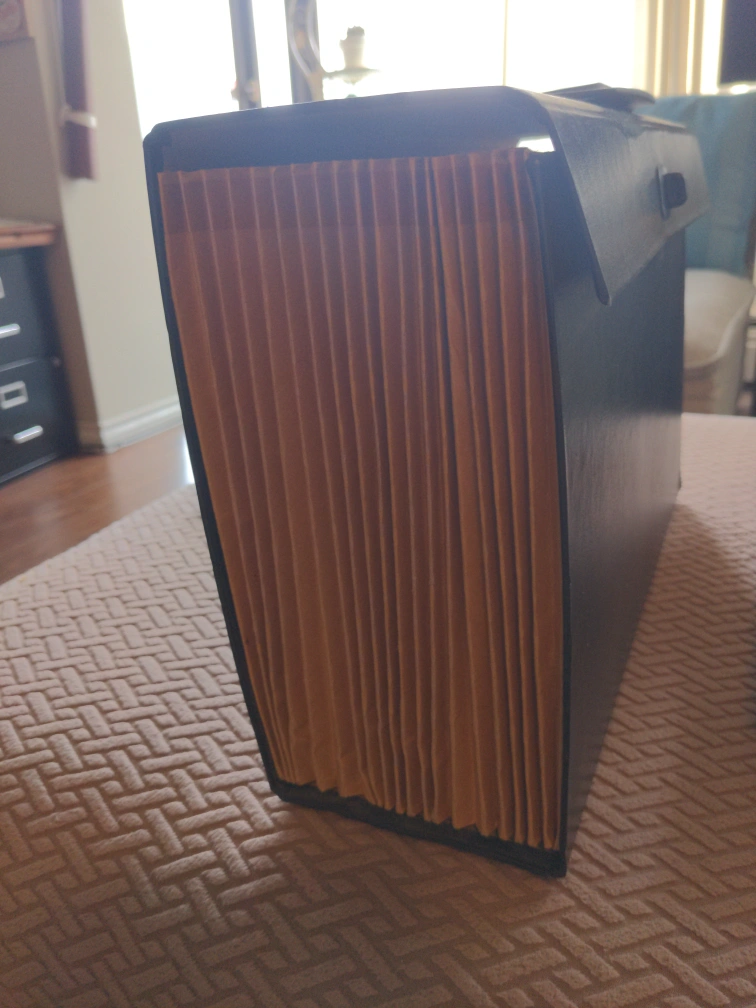 I have 1 expandable file folder with handle perfect for your year end filing. has handle so carry around easily. these retail at Staples
