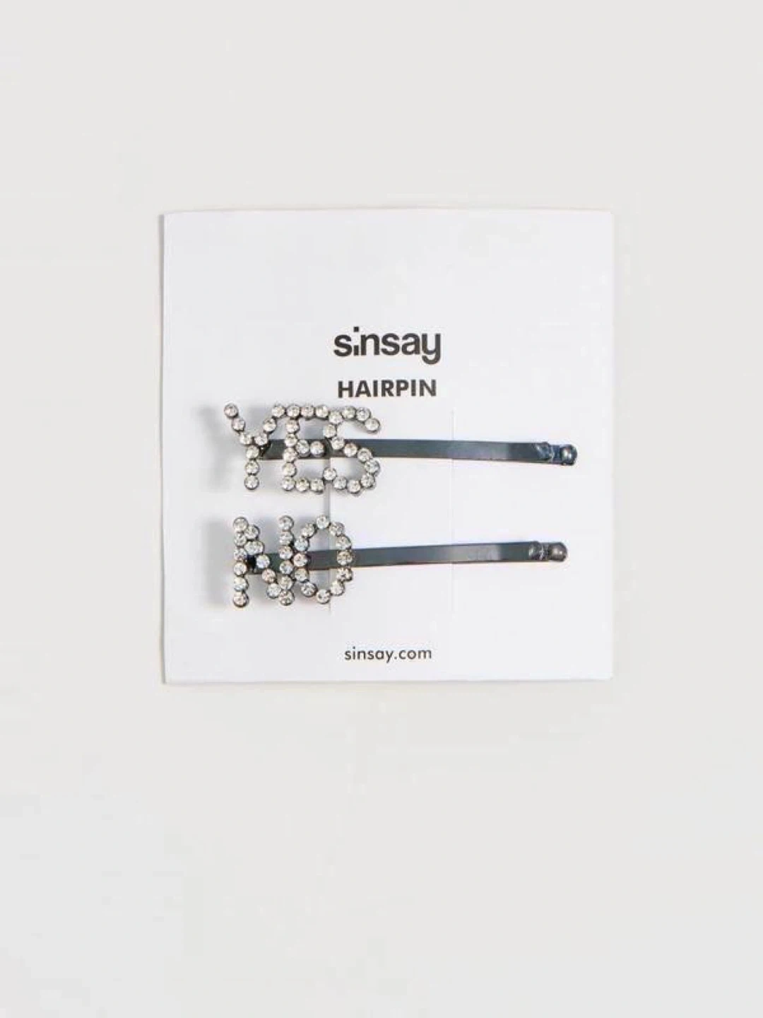 Set of stylish hair pins from Sinsay featuring sparkling “YES” and “NO” lettering with rhinestones ✨