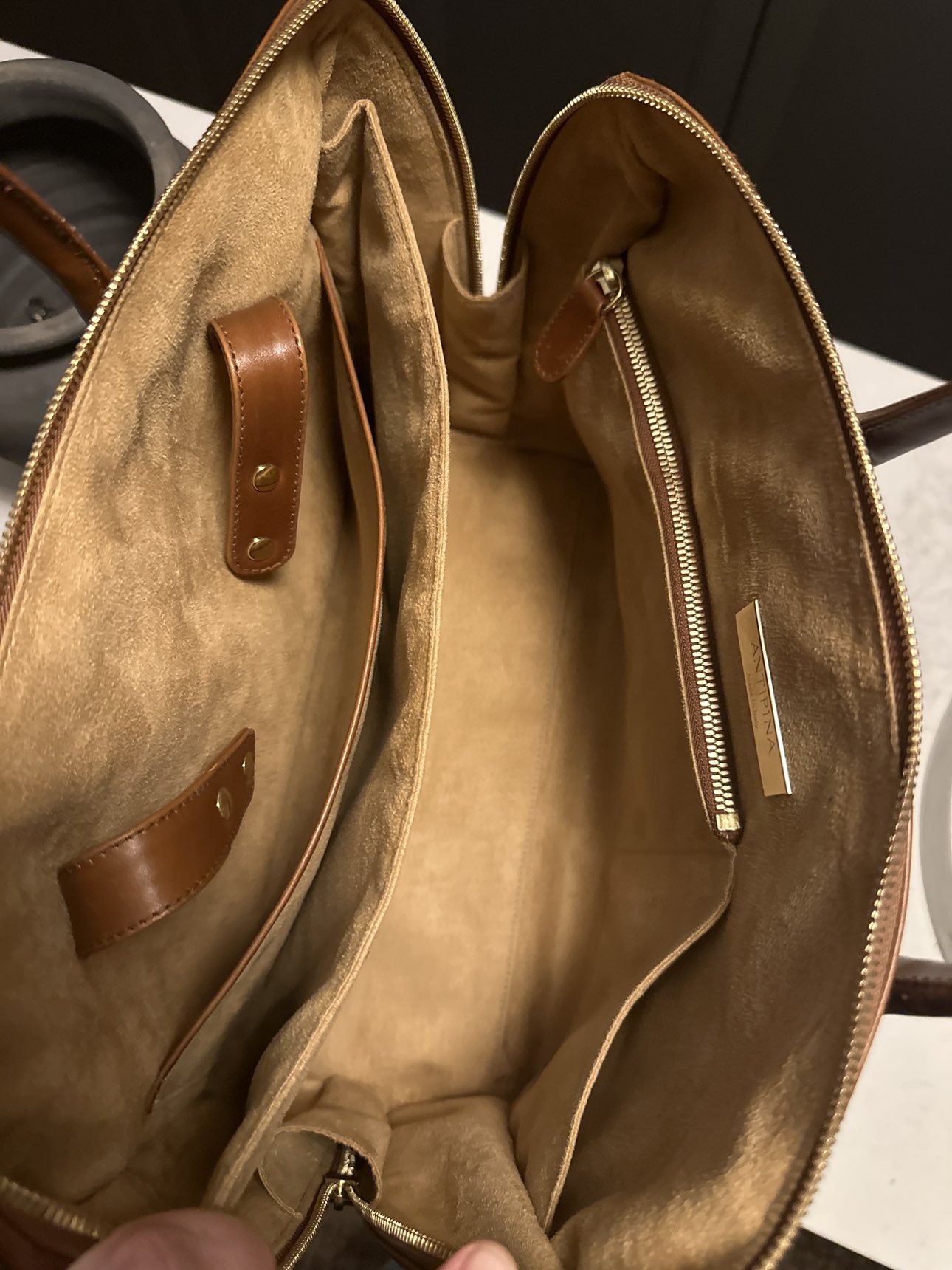 Designer bag in soft leather and suede interior made in Italy.