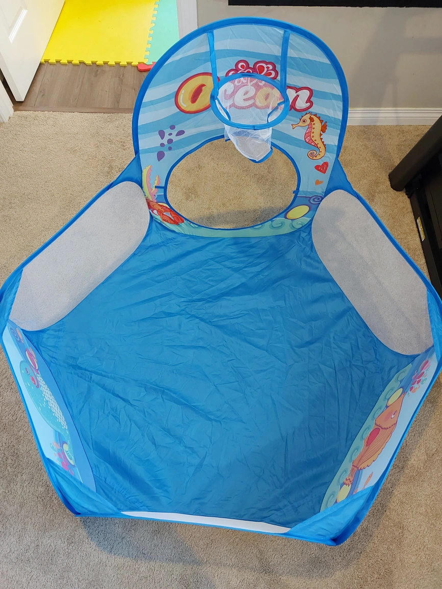 play tunnel, with ball pit and basketball pit.