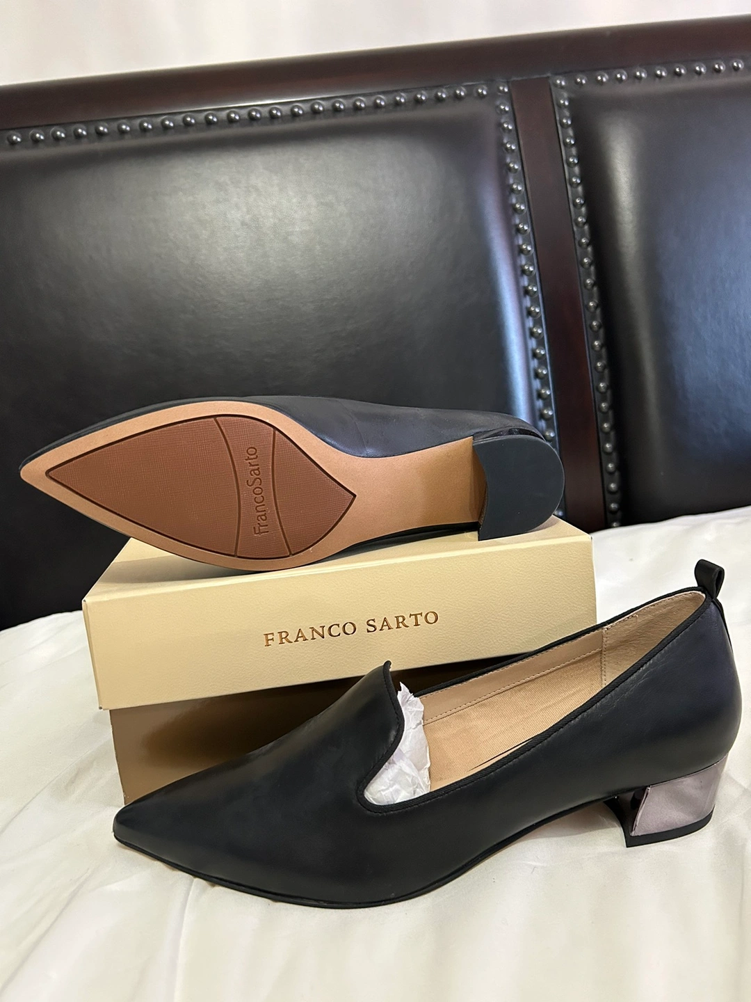 Franco Sarto black leather pumps
