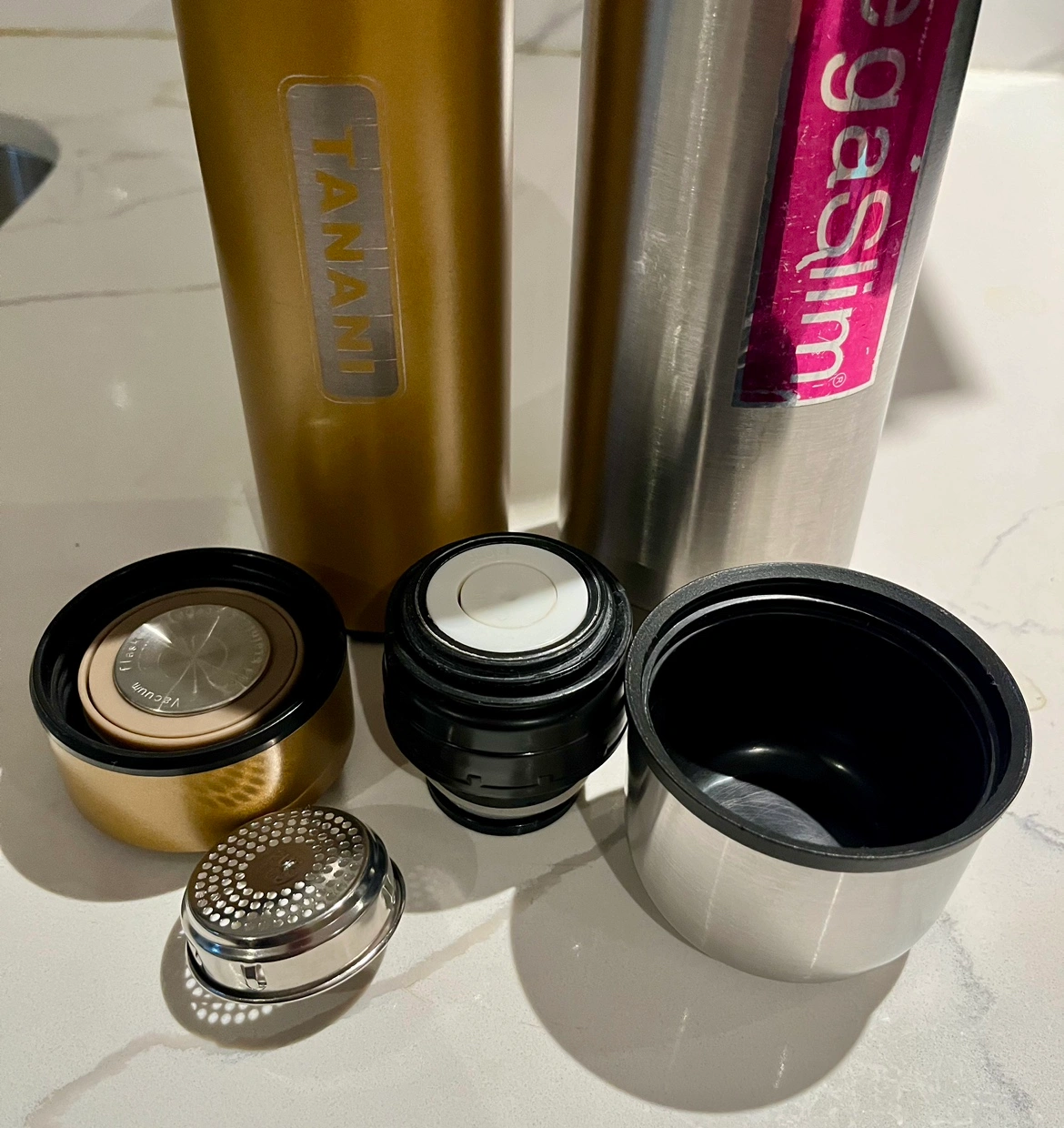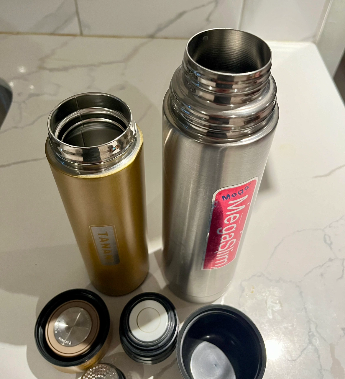 - White one is kinda used and has a little dent on cap