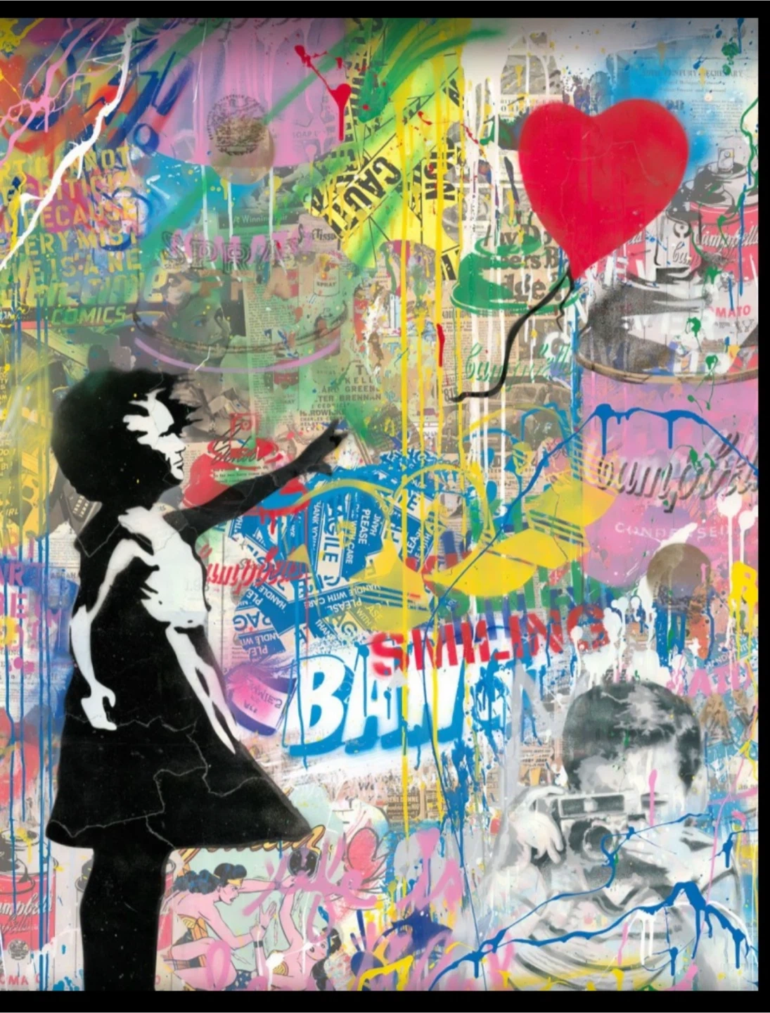 Paintings are printed on canvas by machine.