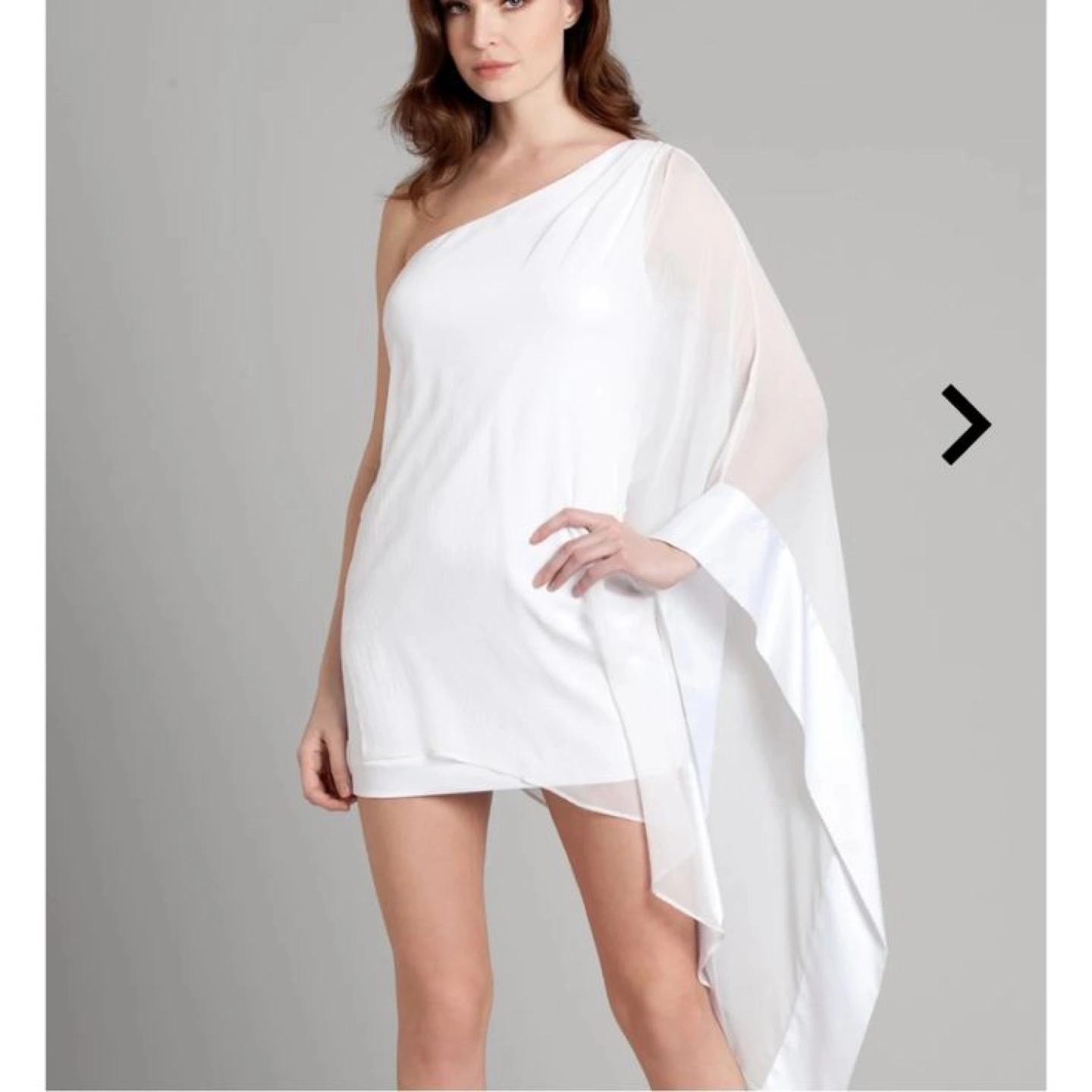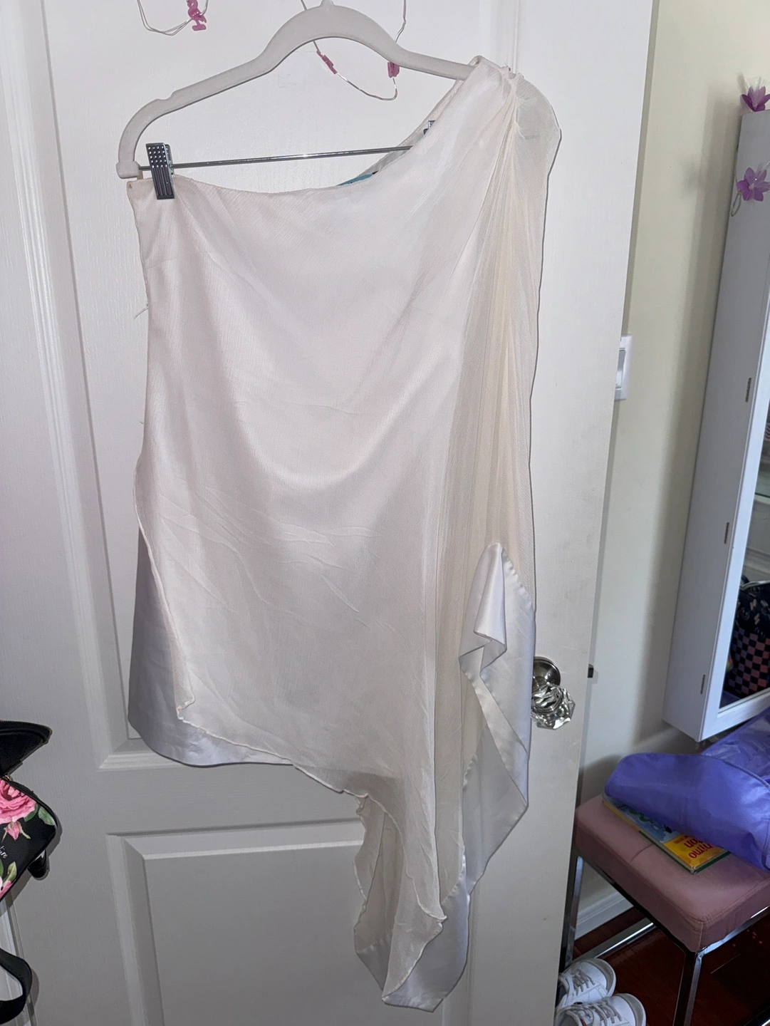 One shoulder white mini dress. Made with Real Silk. Side zipper