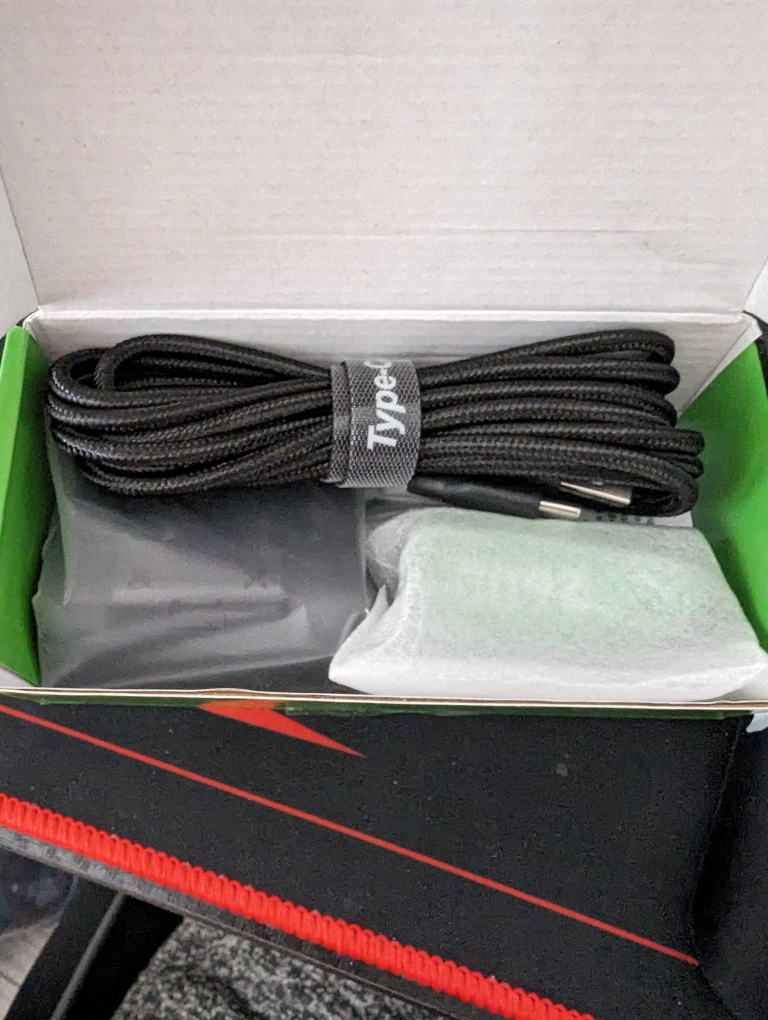 Comes with battery pack, battery cover and USB C cable. Opened to check contents to realize it's not the exact one I wanted.