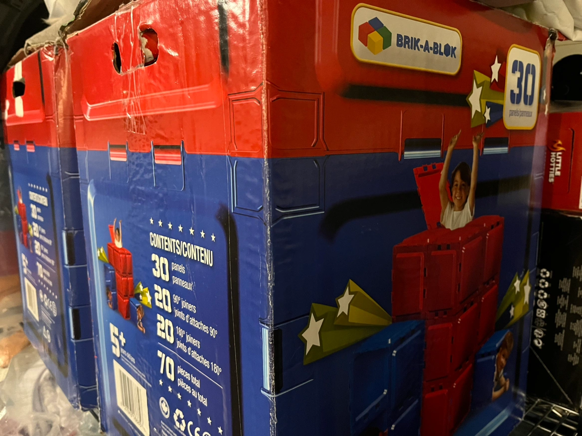 Best play-thing ever! 5+ Easy to assemble panels kids use to custom build forts, playhouses, privacy space…any structure. 15.5” by 15.5” brightly coloured polymer panels, easily snap together with clips that hold it all up and sturdy. Easy to construct and clean, good for inside in cold months and just as fun outside on the grass in warmer weather. Selling two boxes (which you do need to build bigger structures). Totals 60 panels, 80 joiners, in yellow green blue and red. Super fun!
