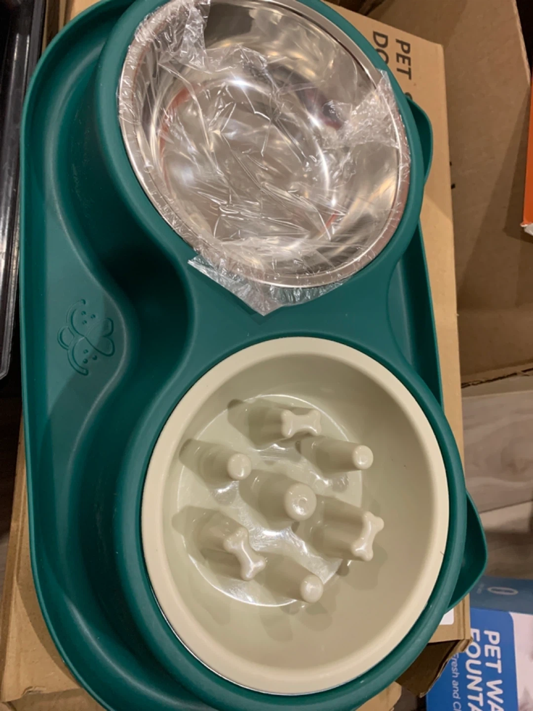 This pet double bowl is made of stainless steel. It's anti-slip and designed to regulate food ration. Perfect for feeding pets.