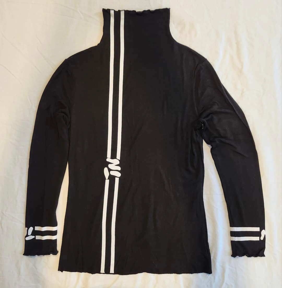 MZJL Black Turtleneck with White Graphic Stripes. #M