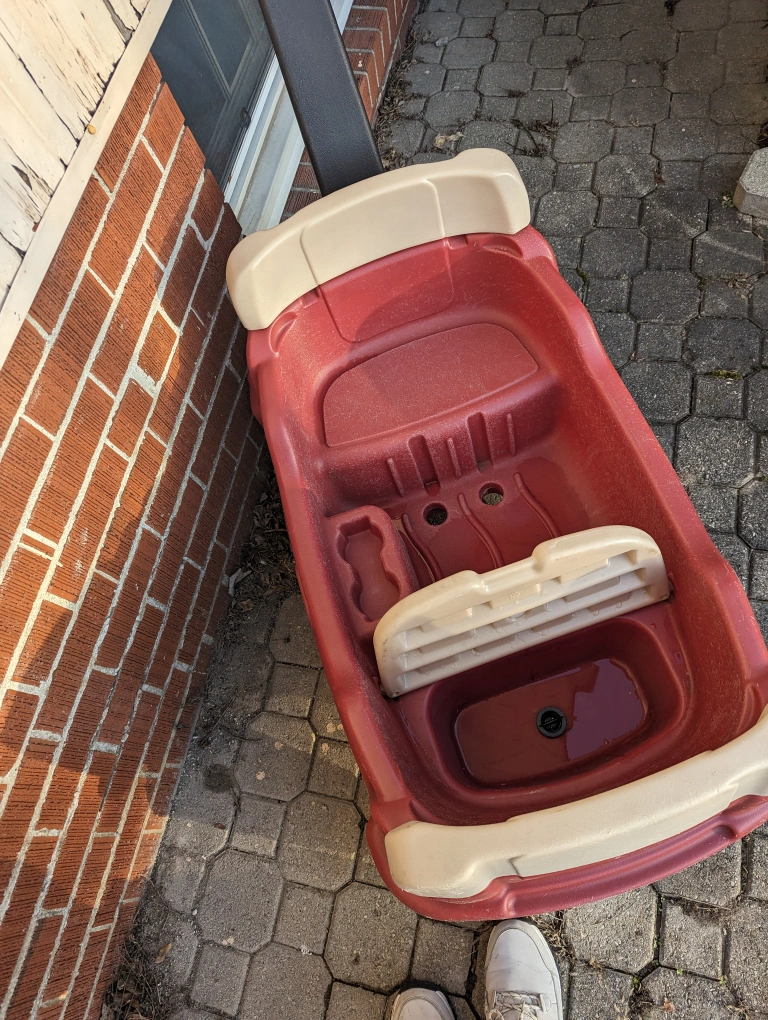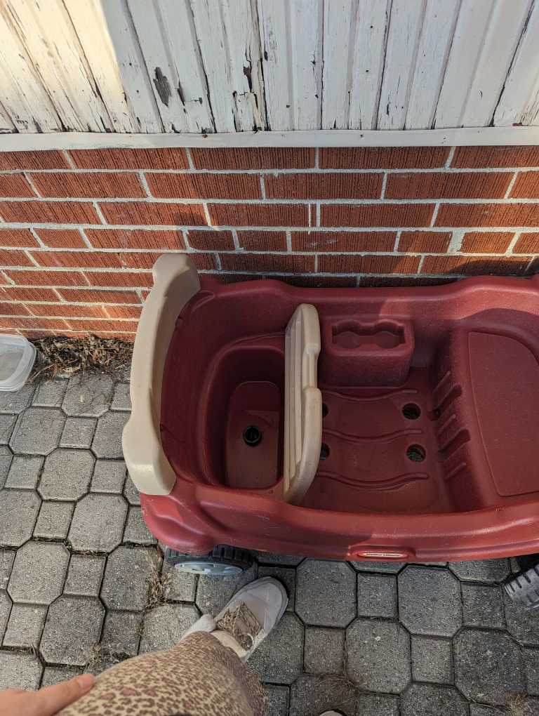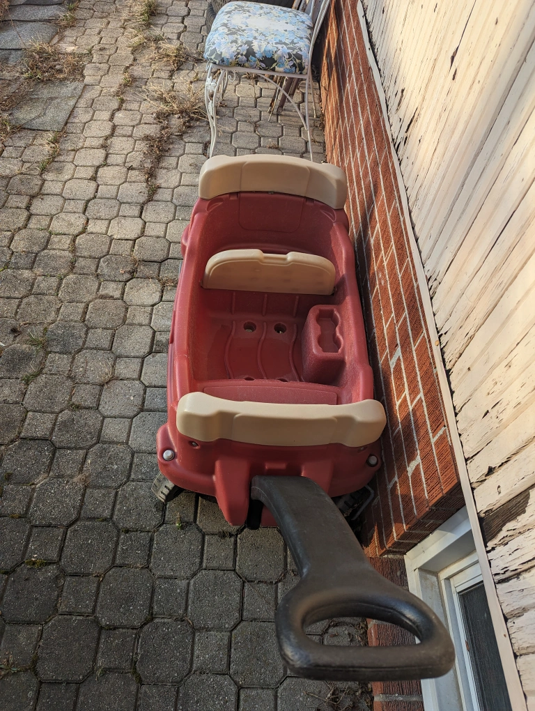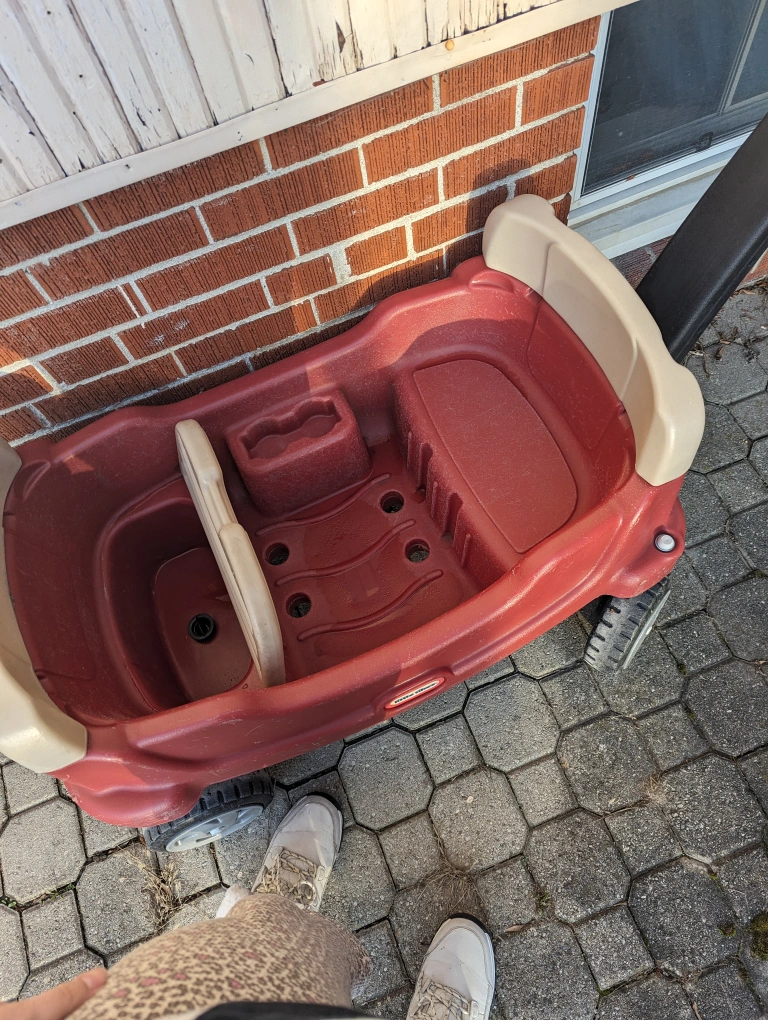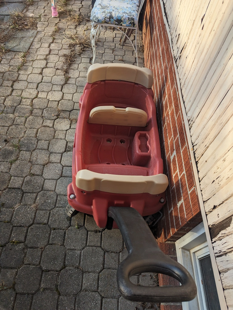 I have a great wagon available, already washed with soap and water, it has a storage area inside the wagon and it's very spacious for kids to use. I'm selling it since my daughter has another wagon that we use and this one is taking up space in the household.