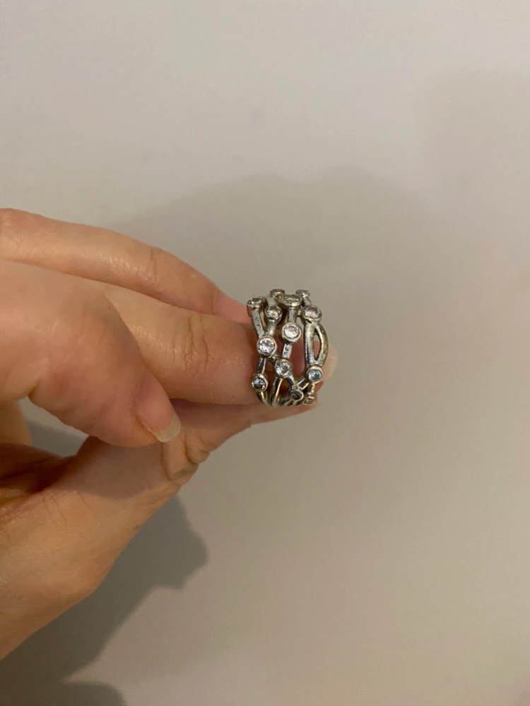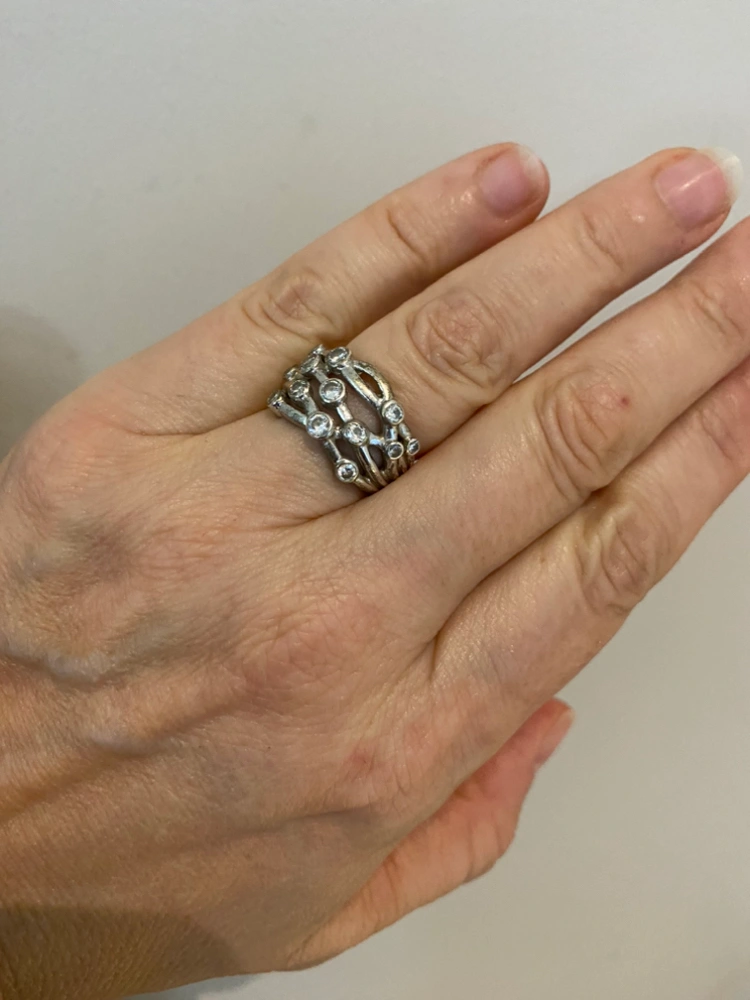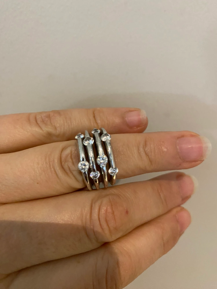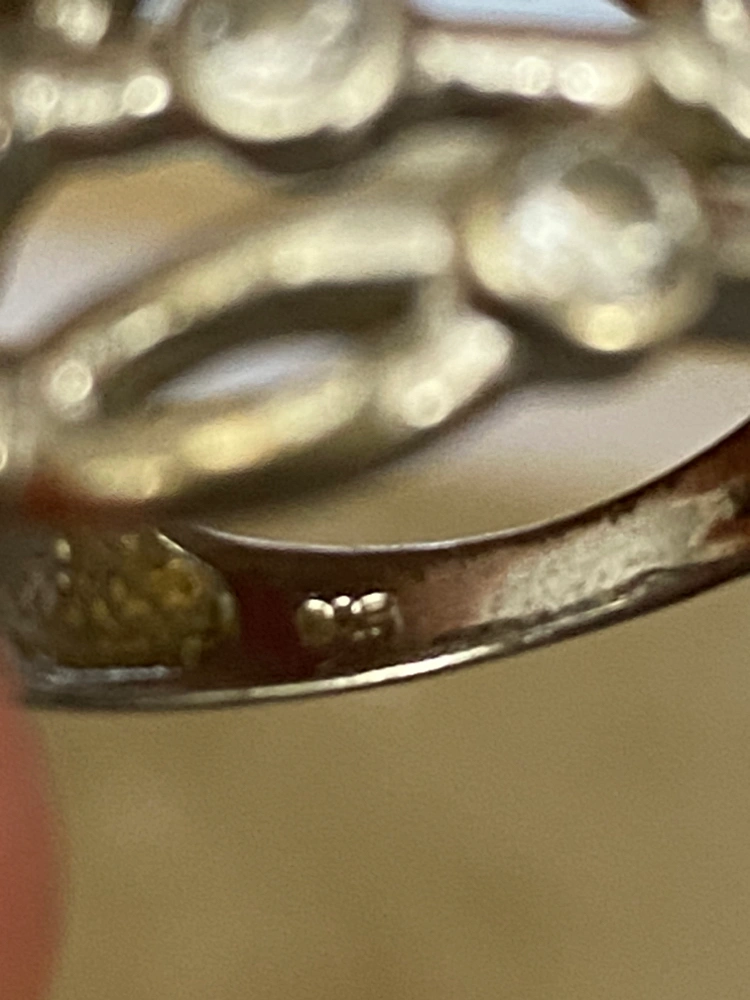 This beautiful ring was purchased from The Shopping Channel a few years ago. It does not fit anymore. Diamonelle is believably diamond looking. Gorgeous ring. Size 7.