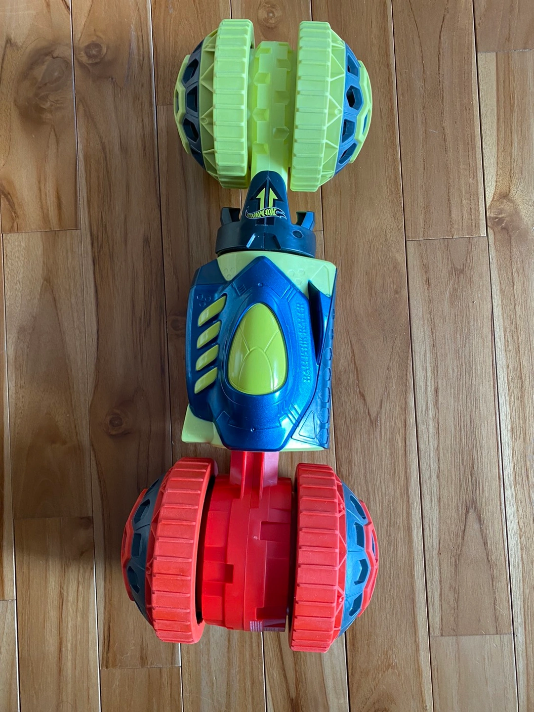 Like new. A super fast remote control vehicle, with off-road capabilities, and all terrain performance plus Ballistik mode to unlock next level of speed and crazy stunt abilities. There are button combinations on controller that activate special stunts like instant pivot turn and a 180 spin. Has a sleek dual sided body and massive hex molded wheels to stabilize on any terrain. Pick up in Scenic Acres NW