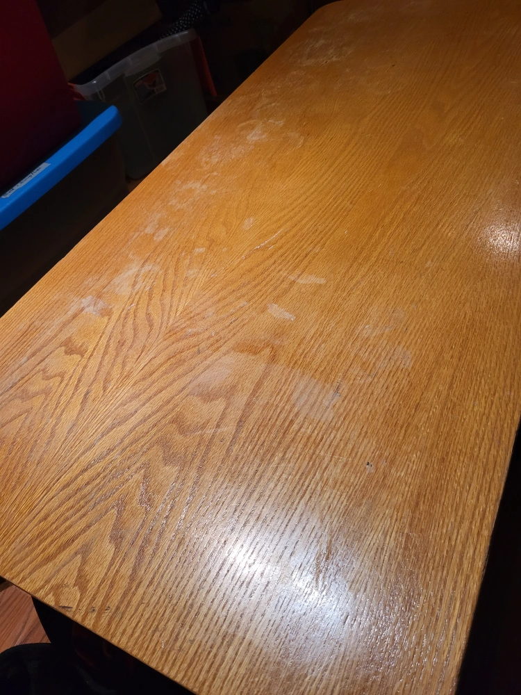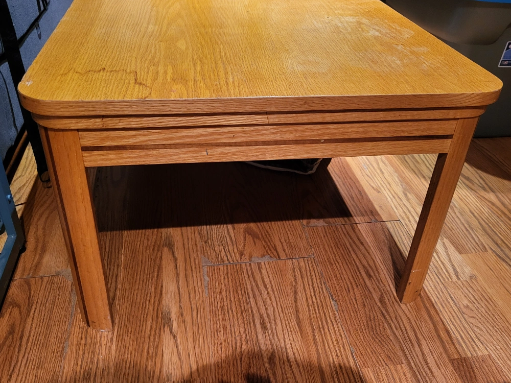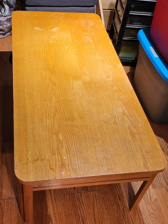 Sturdy coffee table, with a few stains and scratches as shown in photos. Unfortunately it's too big for our new place. It's held up over the years and it will for you too!