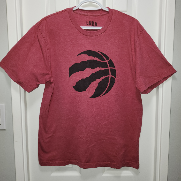 RAPTORS T-SHIRT. Black Graphic on Heathered Red Tee. #L.