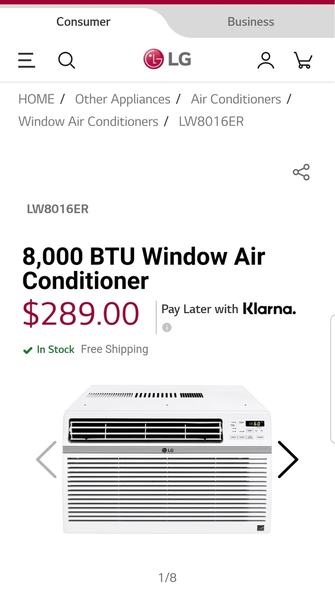 LG window air conditioner 8000 BTU