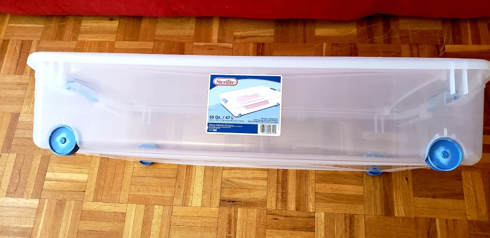 47 Liters/50 Quarts Latch Wheeled Underbed Box by Sterilite, great for storing clothing, shoes, toys, features: