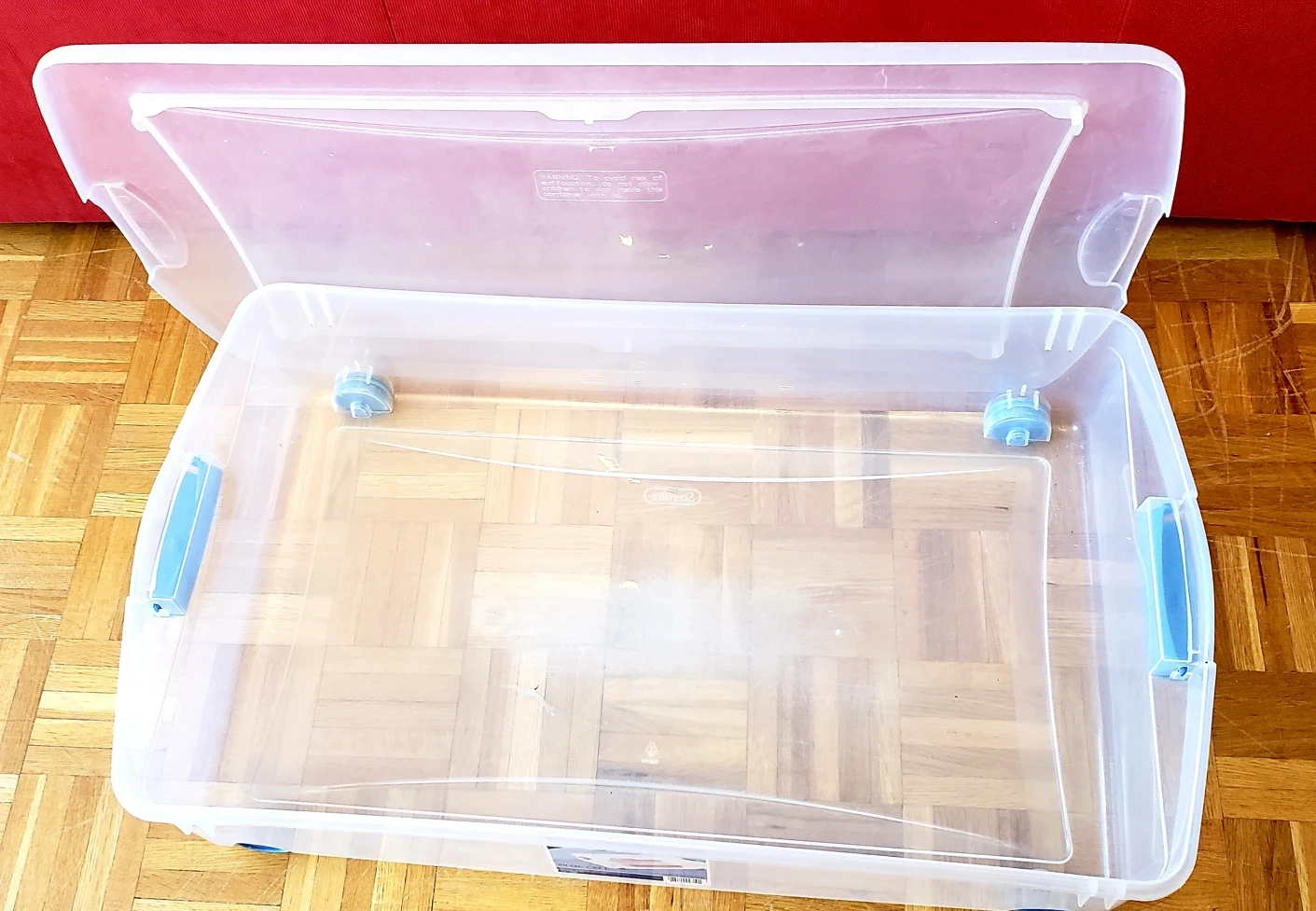 *The smooth gliding wheels allow this latch storage box to be easily slide out from storage under a bed.