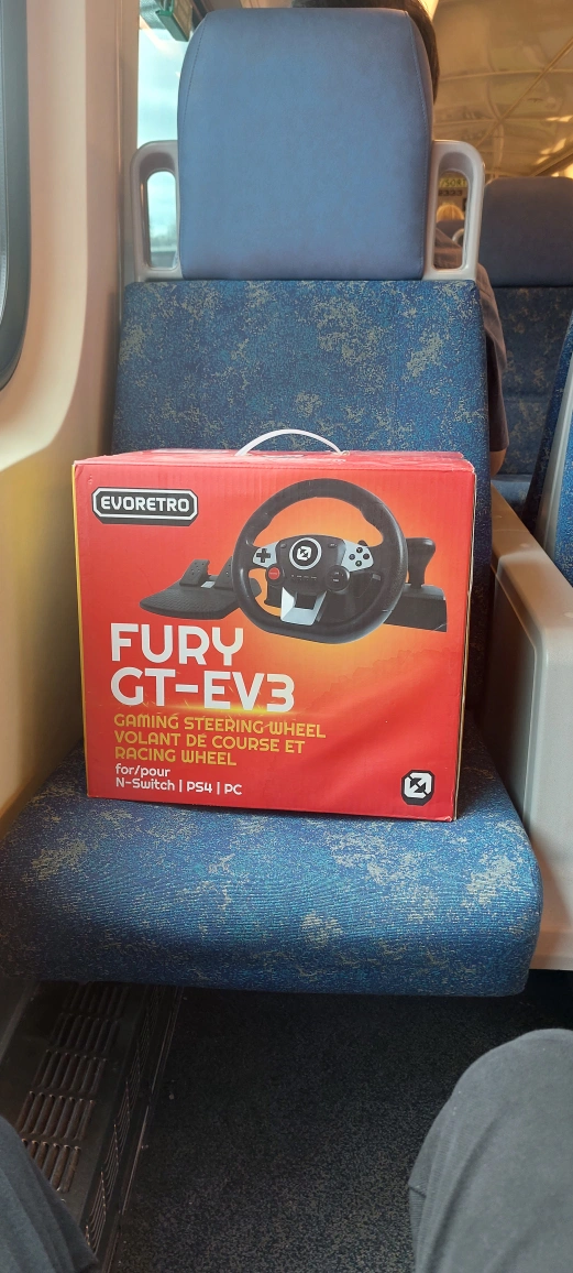 Selling brand new steering wheel Fury GT-EV3. Don't used. I bought to my kid but he didn't like it. Wheel have 270⁰, pedals and gear level.