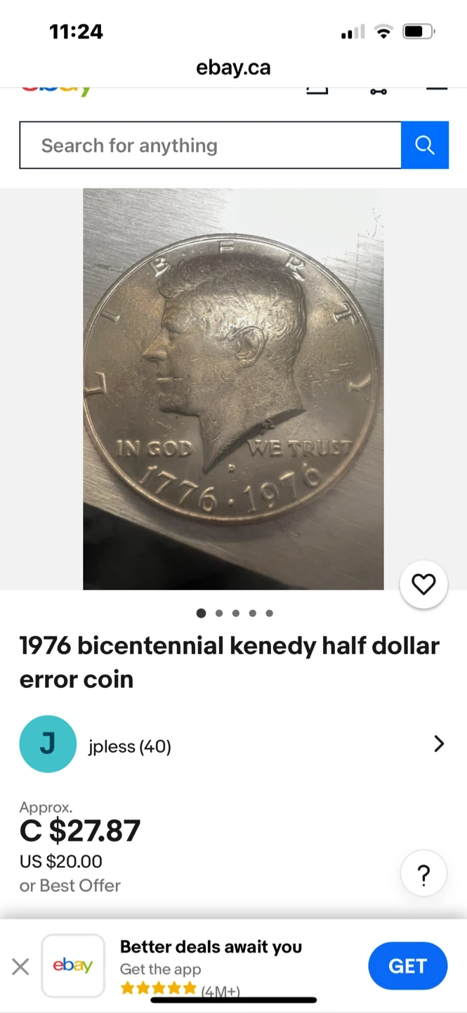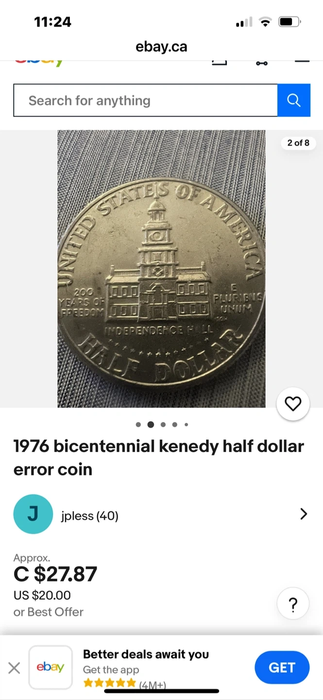 200 celebration Selling a 1776-1976 Bicentennial Kennedy Half Dollar. It's in good condition and a neat piece of history!