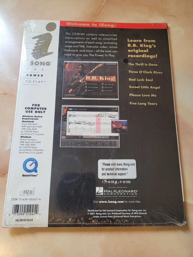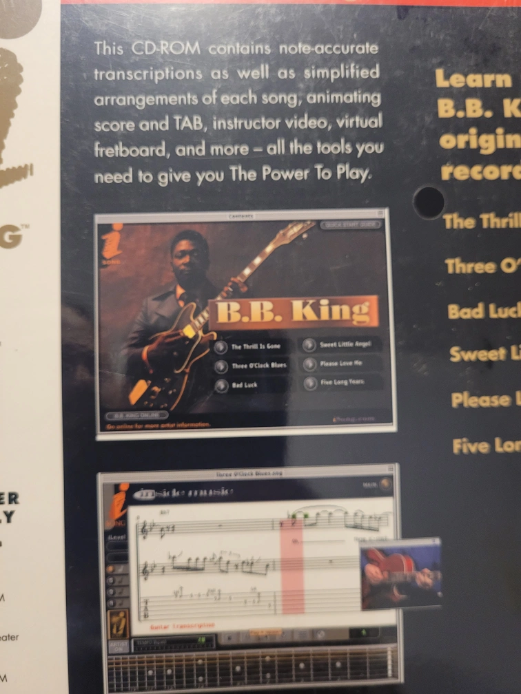 This interactive CD-ROM for Guitar for computer use only to learn to play songs from B.B King
