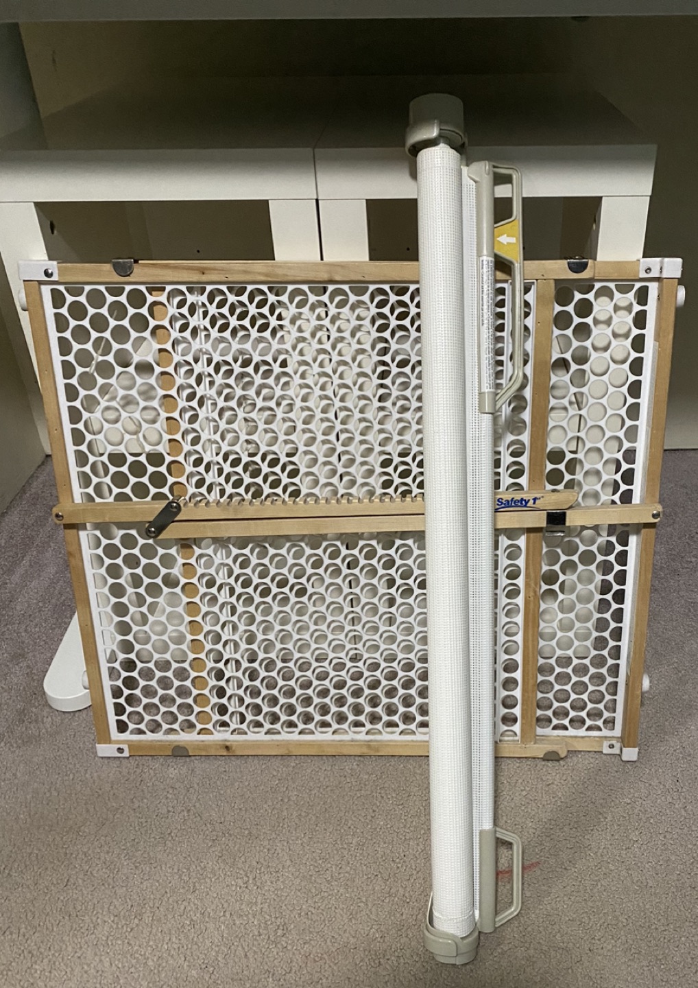 181baby gate/roller gate/pet gate wooden baby gate 43”wide long 23.5”wide short roller baby gate 53” longest stretch out 35 for both pick up only 5mins from speriling skytrain station can meet at skytrain station if needed